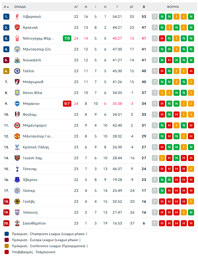 Η Νότιγχαμ φυσικά έχει ματς παραπάνω από όλες τις υπόλοιπες ομάδες που βρίσκονται κοντά της, καθώς το ματς που τελείωσε πριν λίγο με την Μπράιτον ήταν το πρώτο της αγωνιστικής.
