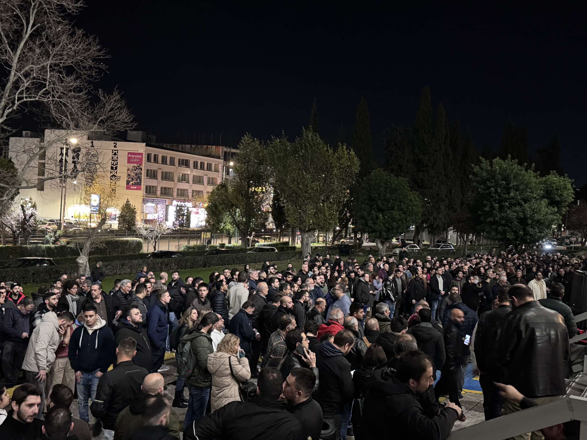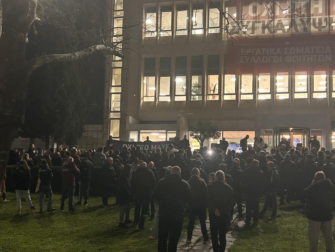 Οι συγκεντρωμένοι φώναξαν συνθήματα και κρέμασαν πανό, χωρίς πάντως να υπάρξουν εντάσεις και προβλήματα.