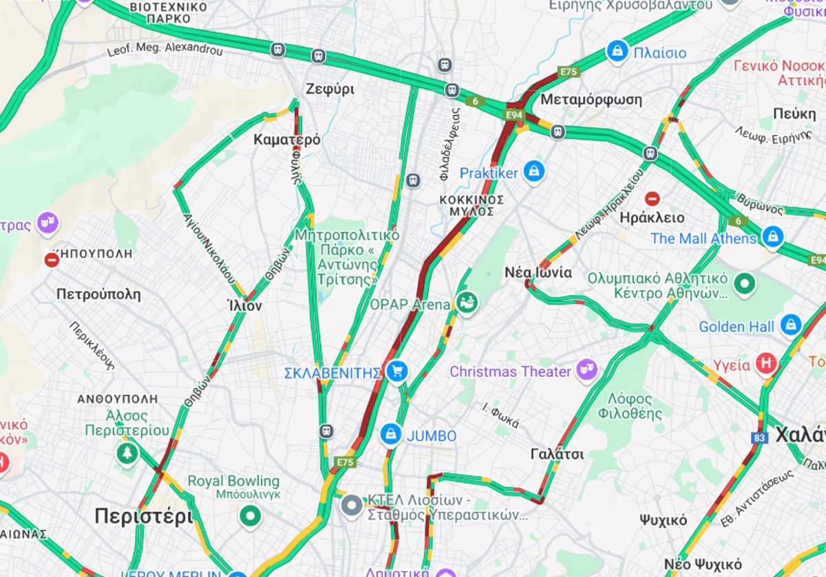 Κίνηση επικρατεί πριν από τον κόμβο της Μεταμόρφωσης μέχρι και την λεωφόρο Αθηνών.