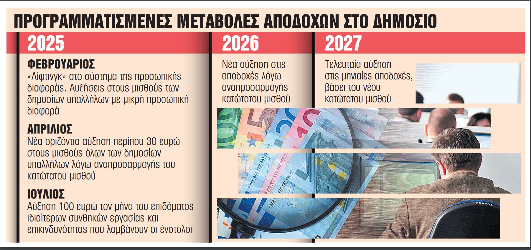 Το ετήσιο όφελος για τους δημοσίους υπαλλήλους θα αγγίξει τα 400 ευρώ το 2025, ενώ έως το 2027 το συνολικό ετήσιο όφελος αναμένεται να φτάσει τα 1.200 ευρώ.