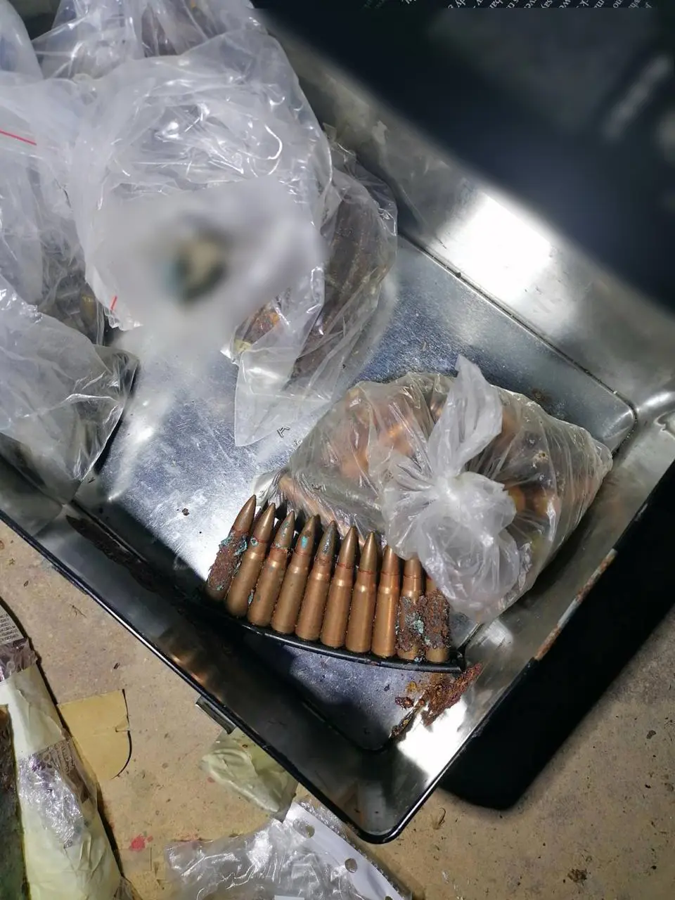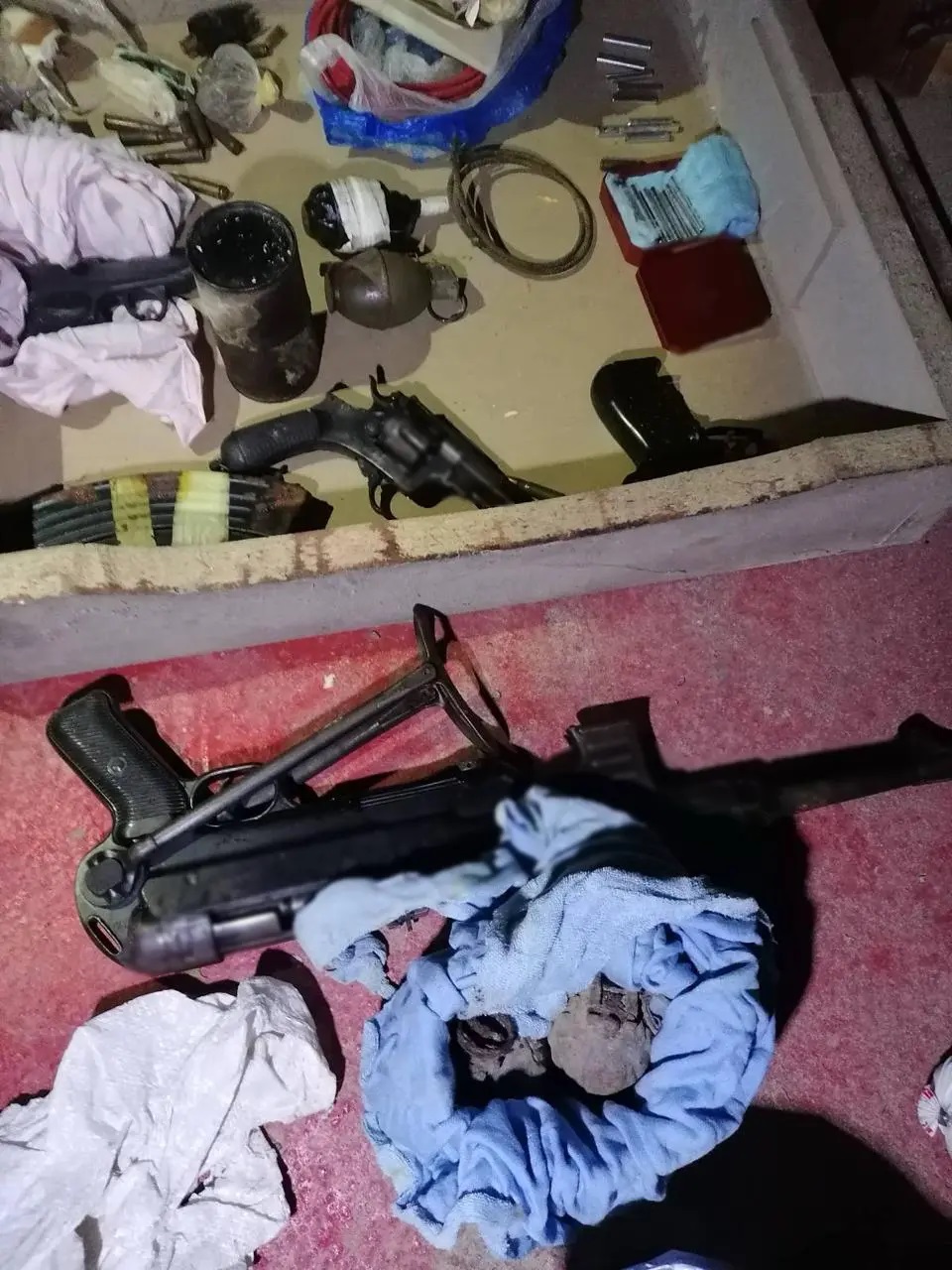 Η αστυνομία, έπειτα από έρευνα στον τόπο που εκτυλίχθηκε η τραγωδία, εντόπισε το βαρύ οπλοστάσιο αποτελούμενο από σφαίρες, χειροβομβίδες, εκρηκτικά και όπλα.