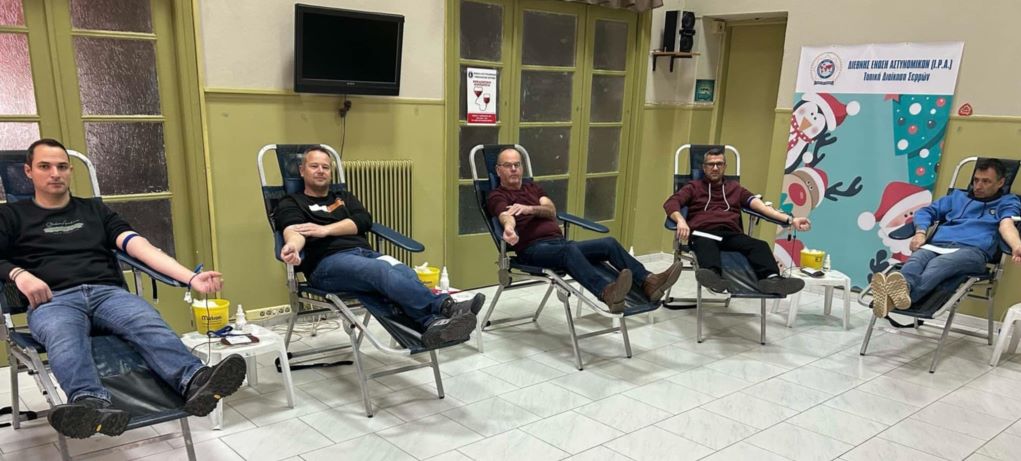 Σε εξέλιξη βρίσκεται η εθελοντική αιμοδοσία, από τις 9 το πρωί που διοργάνωσε η Ένωση Αστυνομικών Υπαλλήλων Σερρών σήμερα Πέμπτη στην Αίθουσα της Λέσχης Αστυνομίας Σερρών, σε συνεργασία με την κινητή μονάδα αιμοδοσίας του Γενικού Νοσοκομείου Σερρών.