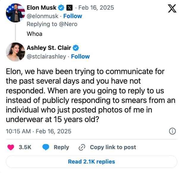 — Ashley St. Clair (@stclairashley) February 15, 2025