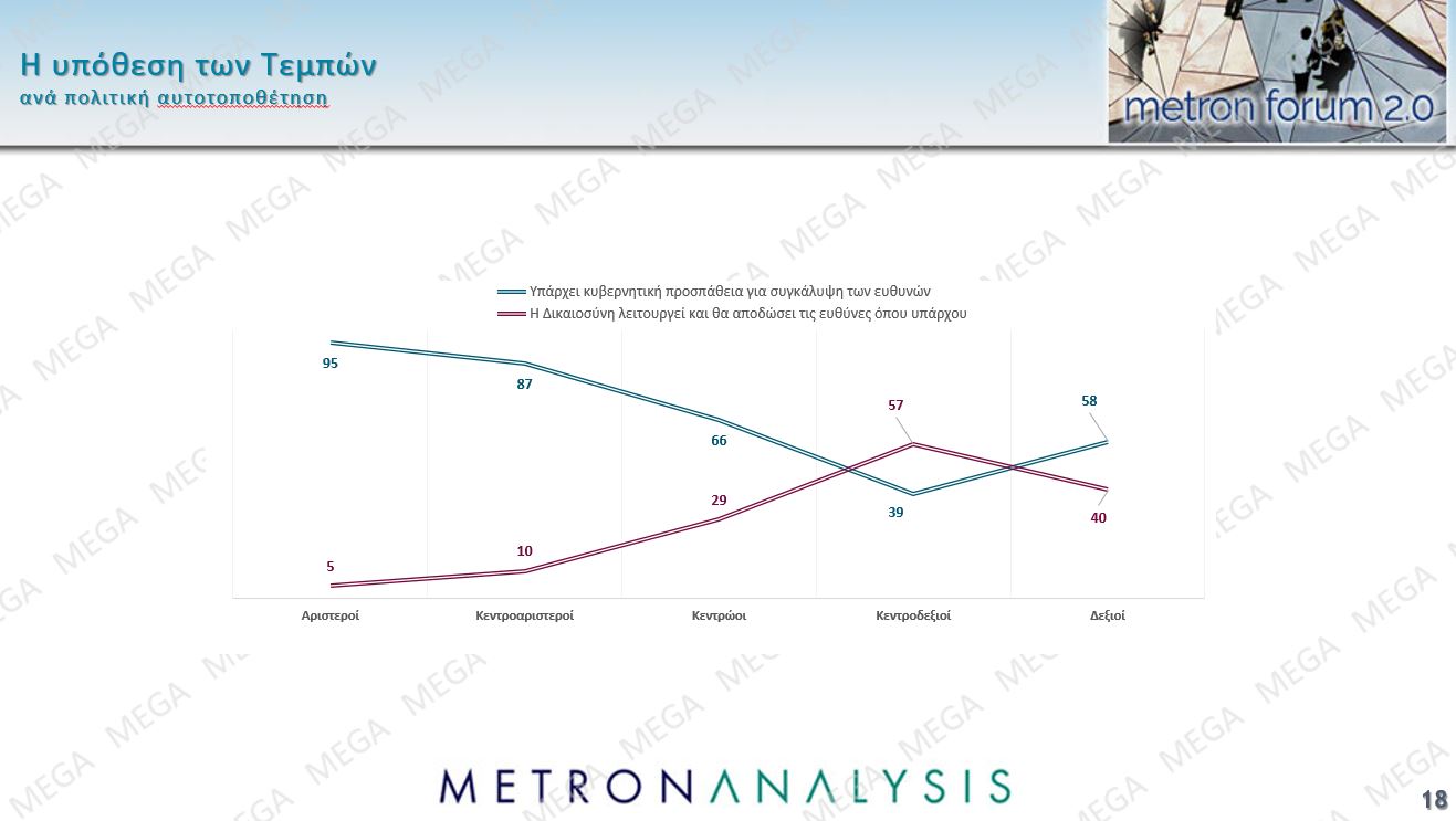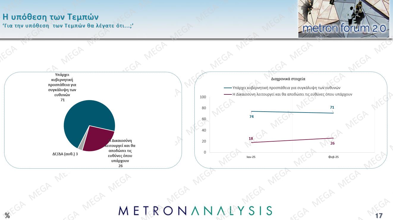 Έτσι το 71% πιστεύει ότι υπάρχει κυβερνητική προσπάθεια για συγκάλυψη των ευθυνών και μόνο το 26% θεωρεί ότι η Δικαιοσύνη λειτουργεί και θα αποδώσει τις ευθύνες όπου υπάρχουν. Η μικρή ενίσχυση της εμπιστοσύνης σε σχέση με τον ιδιαίτερα φορτισμένο ως προς το θέμα αυτό Ιανουάριο δεν δείχνει να αλλάζει τη γενική εικόνα.