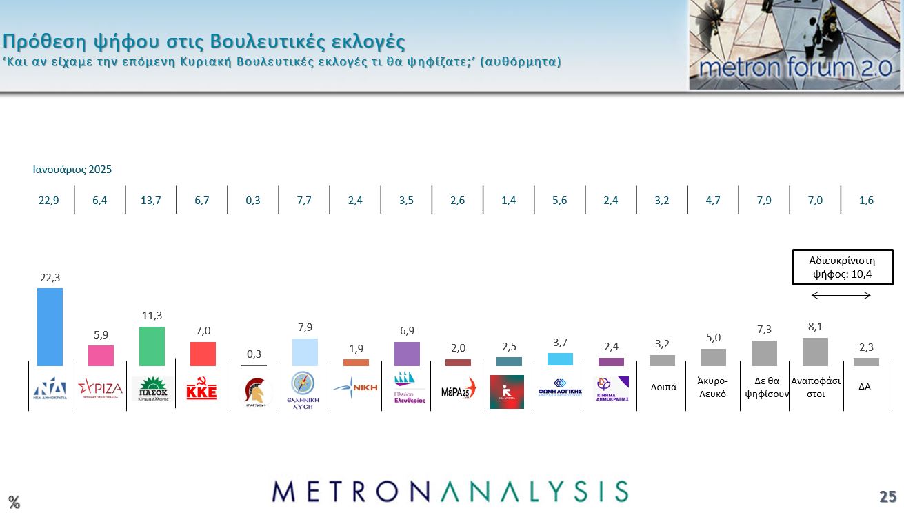 Εκτίμηση ψήφου σύμφωνα με τη δημοσκόπηση της Μetron Analysis