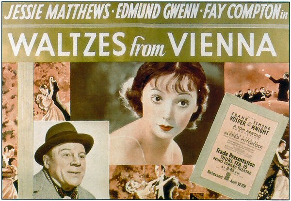 Ο Alfred Hitchcock δημιούργησε την ταινία Waltzes from Vienna το 1934, μια βιογραφική ιστορία για την αντιπαλότητα μεταξύ του Johann Strauss (πατέρα και γιου), καθώς και μια φανταστική αφήγηση γύρω από τη σύνθεση του Γαλάζιου Δούναβη. Τα βαλς εξελίχθηκαν σε αγαπημένο μουσικό είδος του Hitchcock, ντύνοντας μουσικά σκηνές γεμάτες αγωνία.