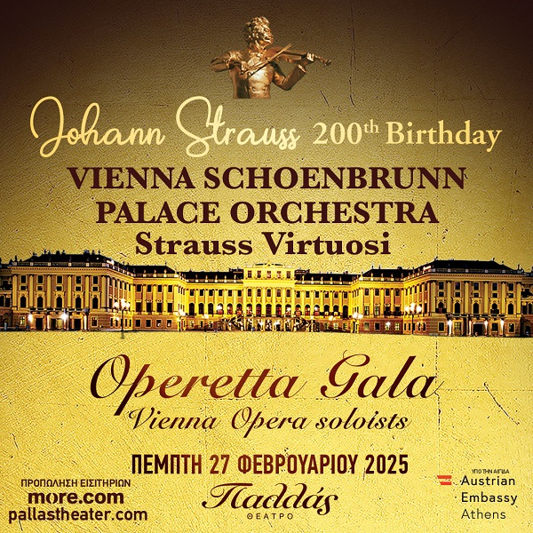 Στις 27 Φεβρουαρίου, το θέατρο Παλλάς θα γίνει το σκηνικό μιας βραδιάς αφιερωμένης στη διαχρονική γοητεία του Γιόχαν Στράους. Οι μελωδίες του Γιόχαν Στράους, που ταξίδεψαν από τις βασιλικές αυλές της Βιέννης μέχρι τον σύγχρονο κινηματογράφο, τη διεθνή σκηνή και τις πιο εμβληματικές μουσικές στιγμές της Ιστορίας, θα ζωντανέψουν μέσα από τις εξαιρετικές ερμηνείες των Strauss Virtuosi. Επικεφαλής των Strauss Virtuosi θα είναι στο πιάνο ο διευθυντής ορχήστρας, Vinicius Kattah ενώ τις άριες από τις οπερέτες του Johann Strauss ερμηνεύουν 2 διακεκριμένοι σολίστ της Όπερας της Βιέννης, η σοπράνο Jenifer Lary και ο βαρύτονος Michael C. Havlicek.