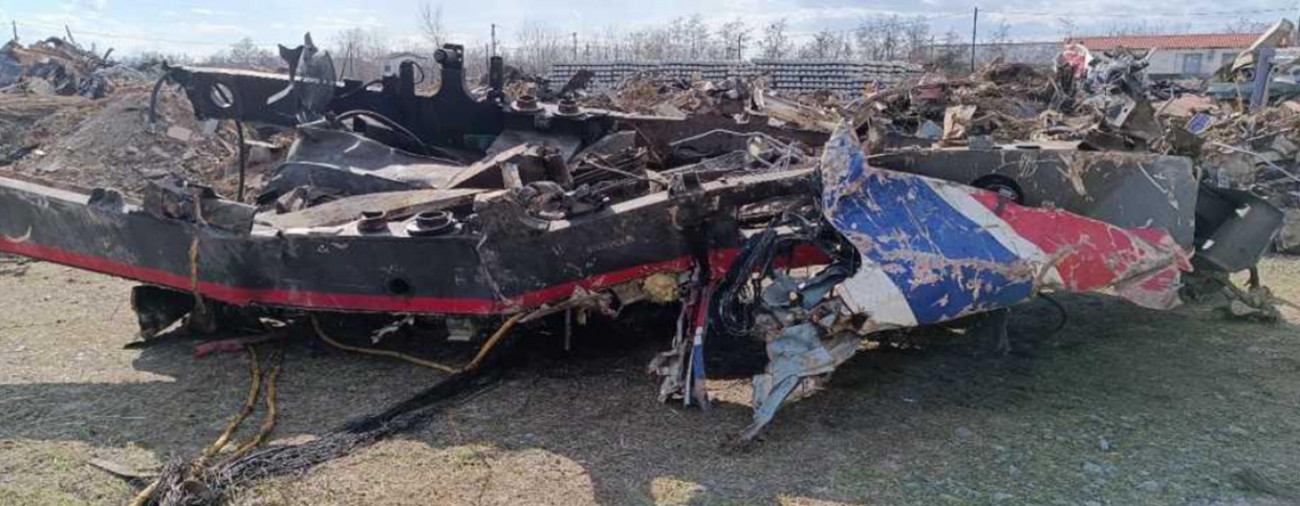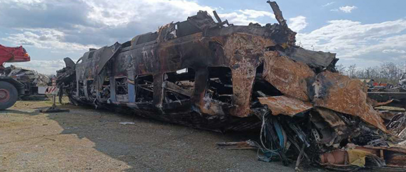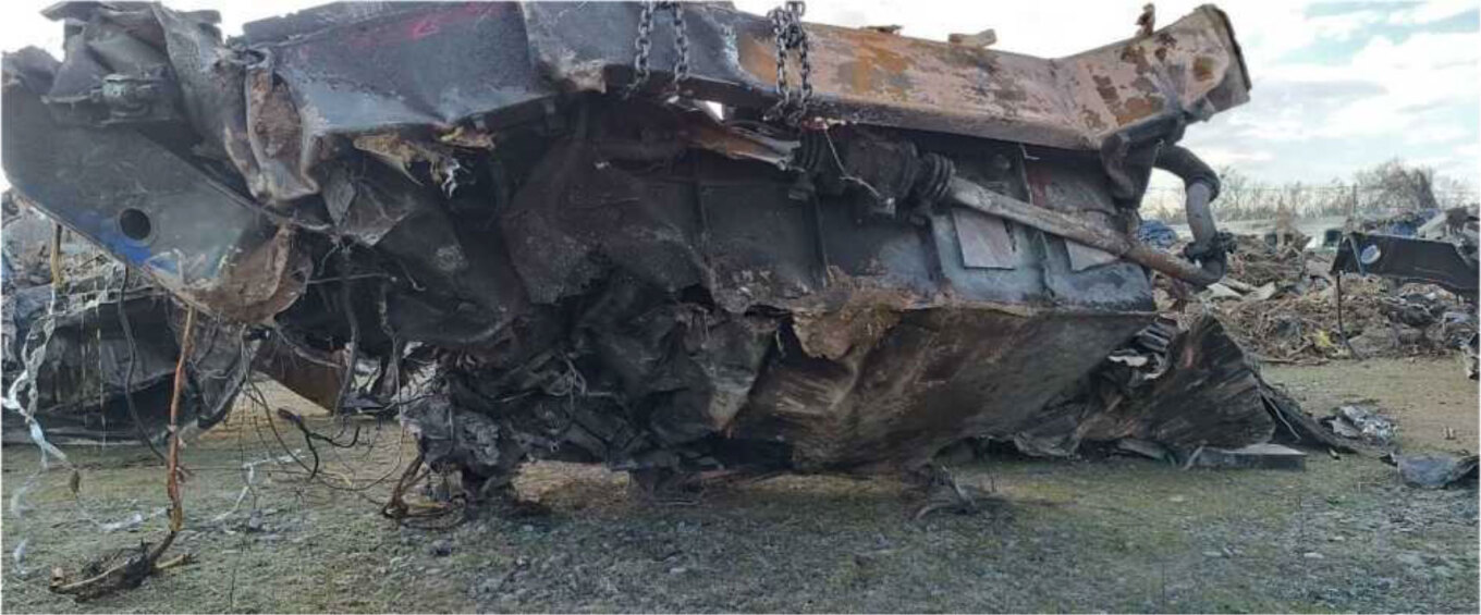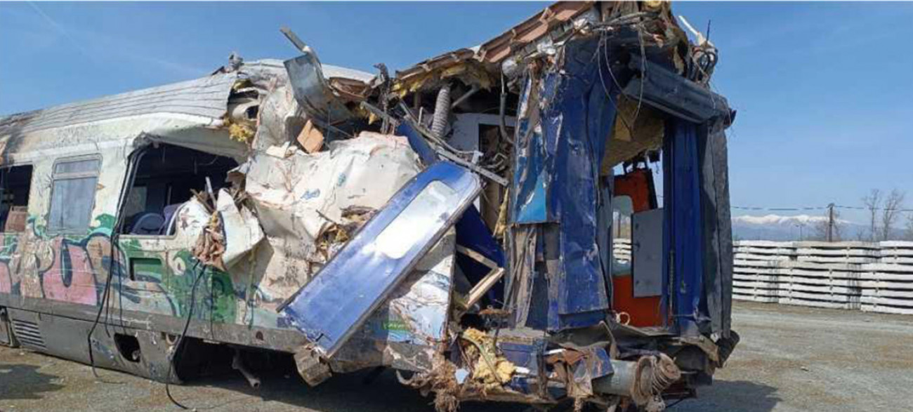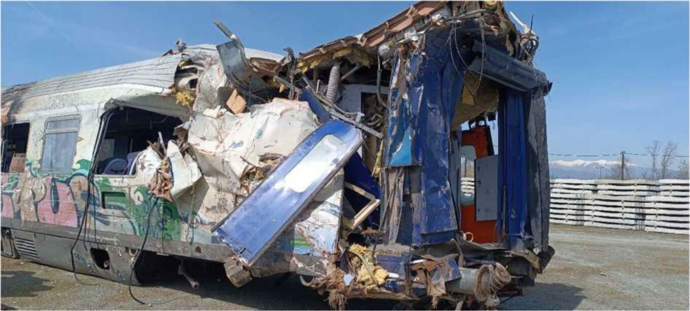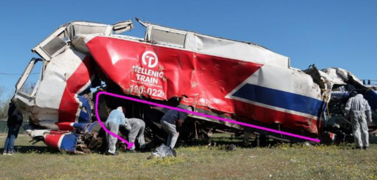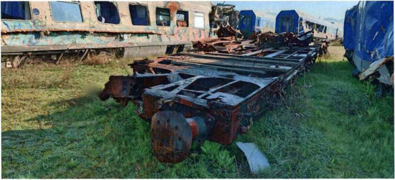 Τμήμα (σασί) της πλήρως κατεστραμμένης μηχανής 120-023 της επιβατικής αμαξοστοιχίας IC-62.