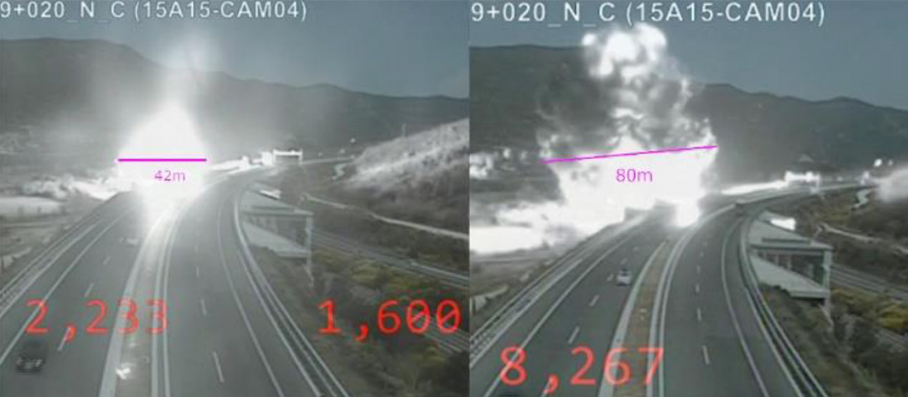 Πυρκαγιά στο εσωτερικό του μετασχηματιστή της εμπορικής αμαξοστοιχίας ως δευτερογενές αποτέλεσμα της πυρκαγιάς στην pool fire #1.