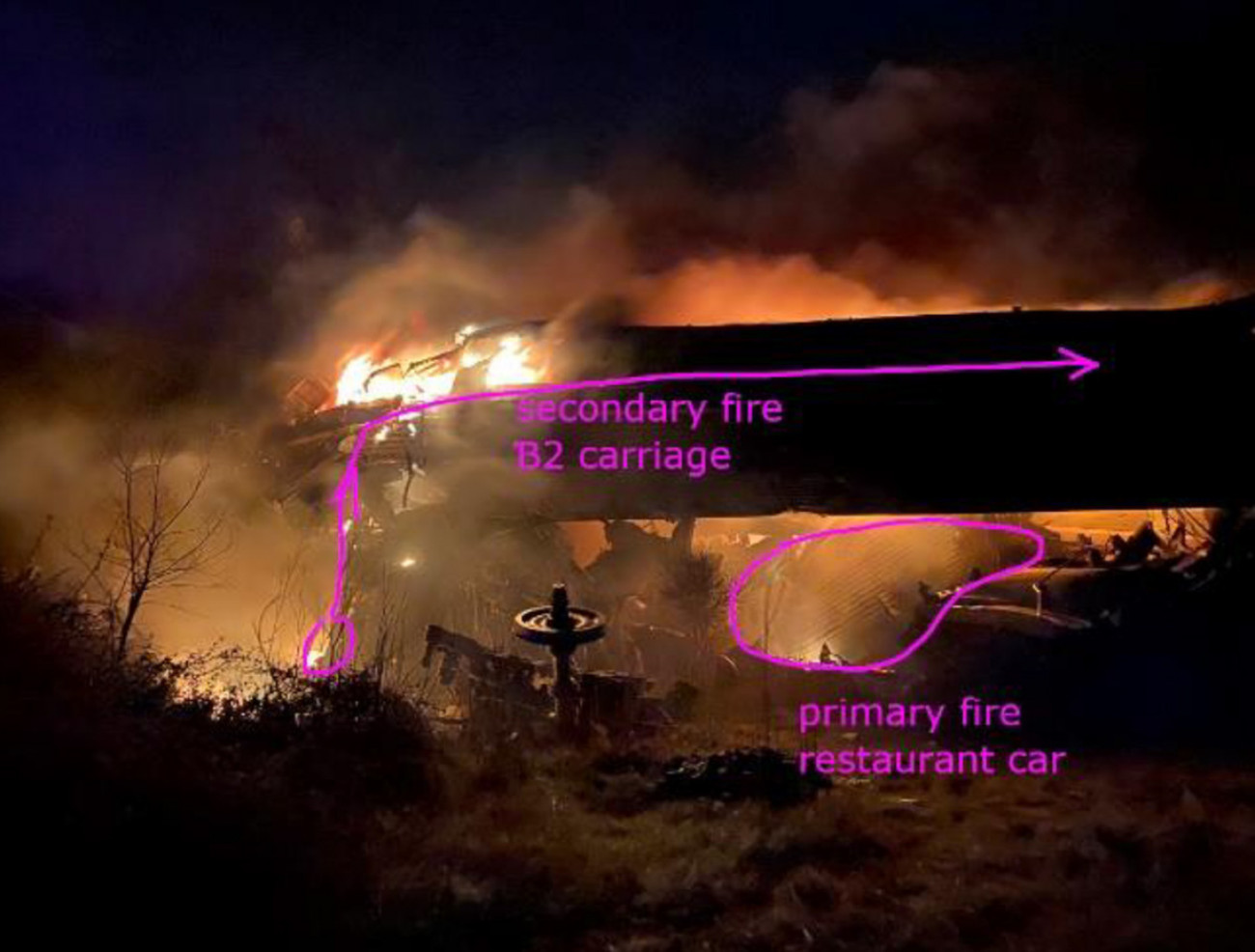 Μια άλλη πυρκαγιά ξεκίνησε στο μπροστινό μέρος του βαγονιού Β2