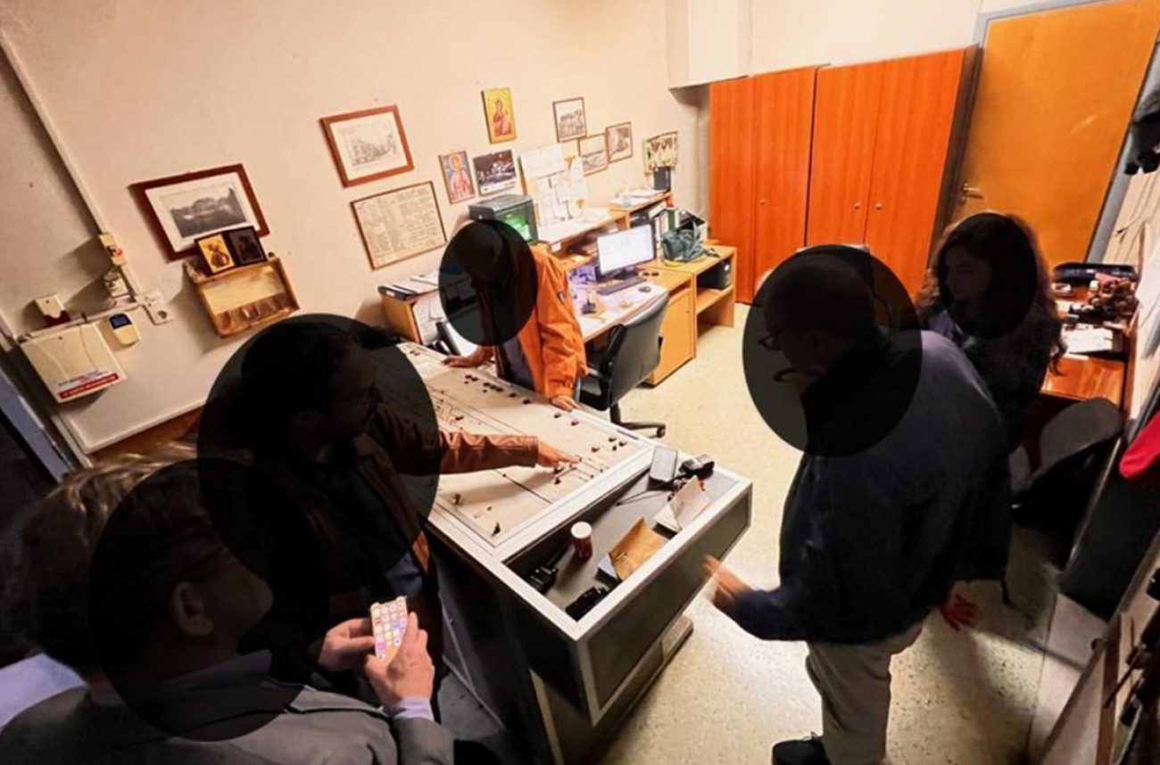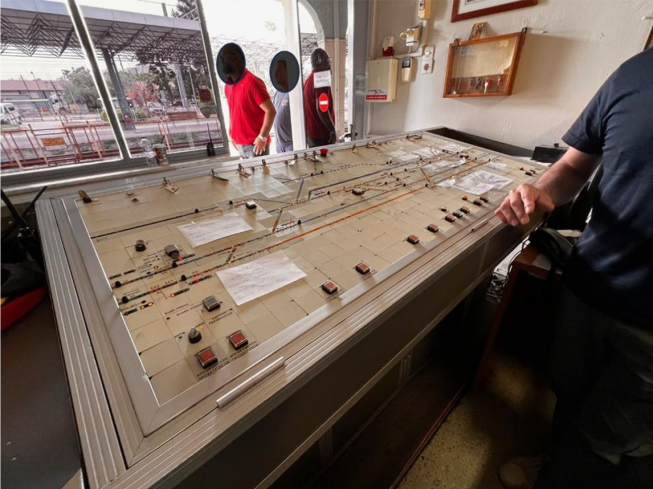 Η αίθουσα ελέγχου κυκλοφορίας με τους σταθμάρχες στο σταθμό της Λάρισας.