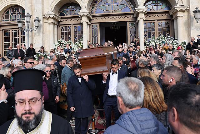 Η εξόδιος ακολουθία τελέστηκε στον Ιερό Μητροπολιτικό Ναού του Αγίου Μηνά στη γενέτειρά του, το Ηράκλειο, που έμελλε να είναι και ο τόπος όπου άφησε την τελευταία του πνοή. Δίπλα του τα αγαπημένα του αδέρφια, Γιάννης και Χαρά, αλλά και σημαντικοί συνεργάτες του όπως ο Μάριος Φραγκούλης και η Λίνα Νικολακοπούλου.