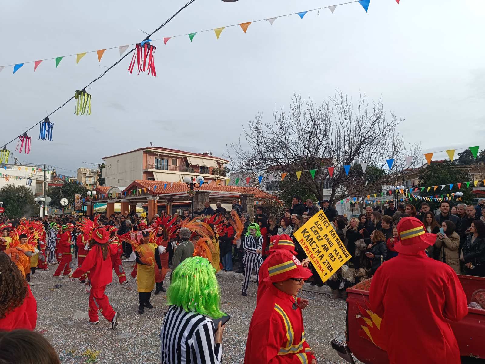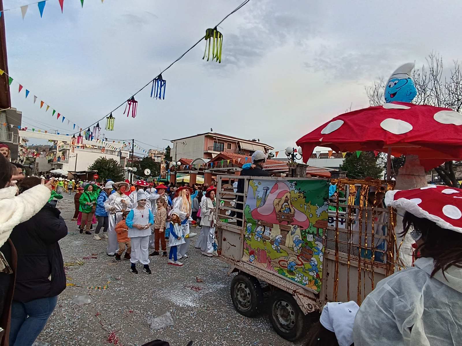 Από τα Minions των νηπιαγωγείων μέχρι τη στάνη του Β’ Δημοτικού και τις Gossip Girls του πολιτιστικού συλλόγου Σίδερης, τις αγέραστες γυναίκες των ΚΑΠΗ, τα θαλάσσια πλάσματα της Σαγιάδας, τα στρουμφάκια, τις φωτιές και τους πυροσβέστες, το καρτέλ λαδιού και τα φωτιστικά από χρυσάφι, η ποικιλία των συμμετοχών έδωσε ζωντάνια και κέφι στην παρέλαση.