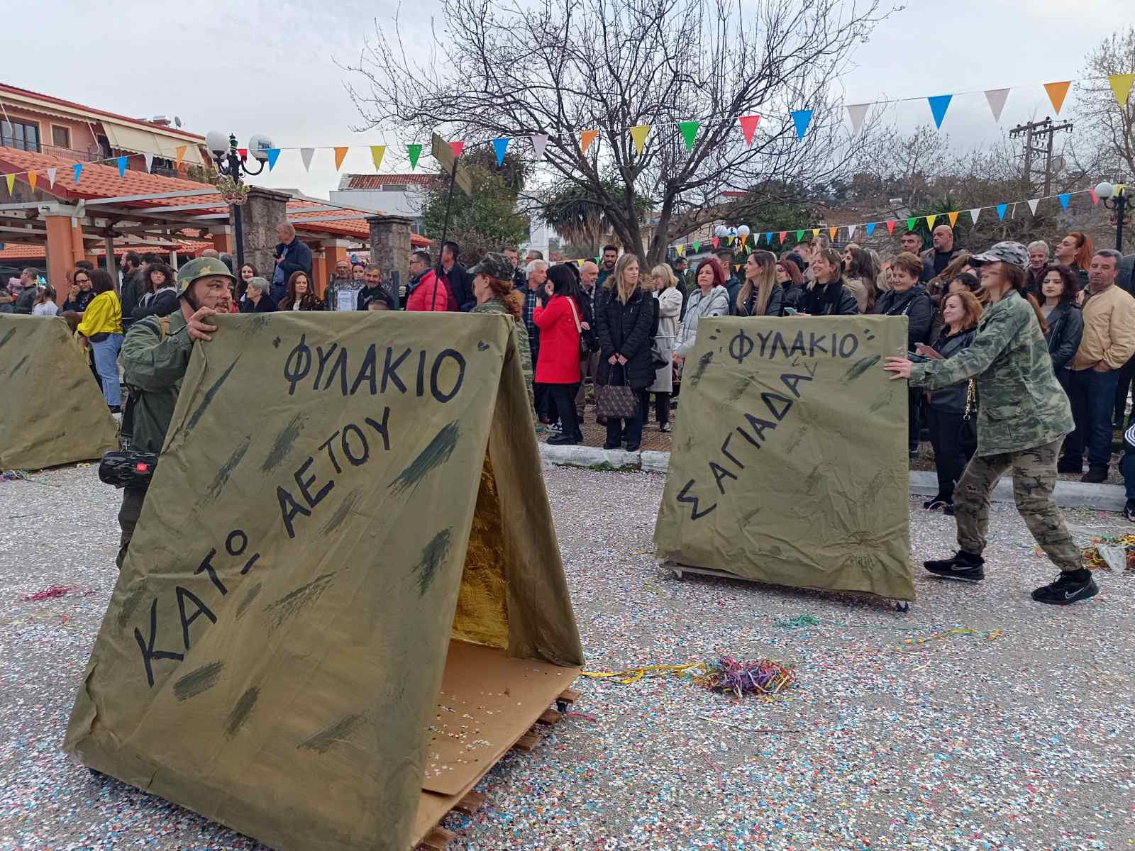 Ιδιαίτερο ενδιαφέρον προκάλεσε το σατιρικό άρμα με τον στρατιώτη Καραμήτρο, ο οποίος «παρέδωσε» τη σημαία του στρατοπέδου, σχολιάζοντας το επικείμενο κλείσιμο του 628 Τάγματος Πεζικού. Και αν κάποιος ήλπιζε σε… παρέμβαση υψηλού επιπέδου, ο «πλανητάρχης» Ντόναλντ Τραμπ προσπάθησε να μεσολαβήσει, όμως –όπως αποδείχθηκε– η αποστολή του απέτυχε! Οι θεατές χειροκρότησαν με ενθουσιασμό, καθώς η θεατρικότητα και το χιούμορ συναντήθηκαν με μια υπαρκτή ανησυχία για τις εξελίξεις στην περιοχή.