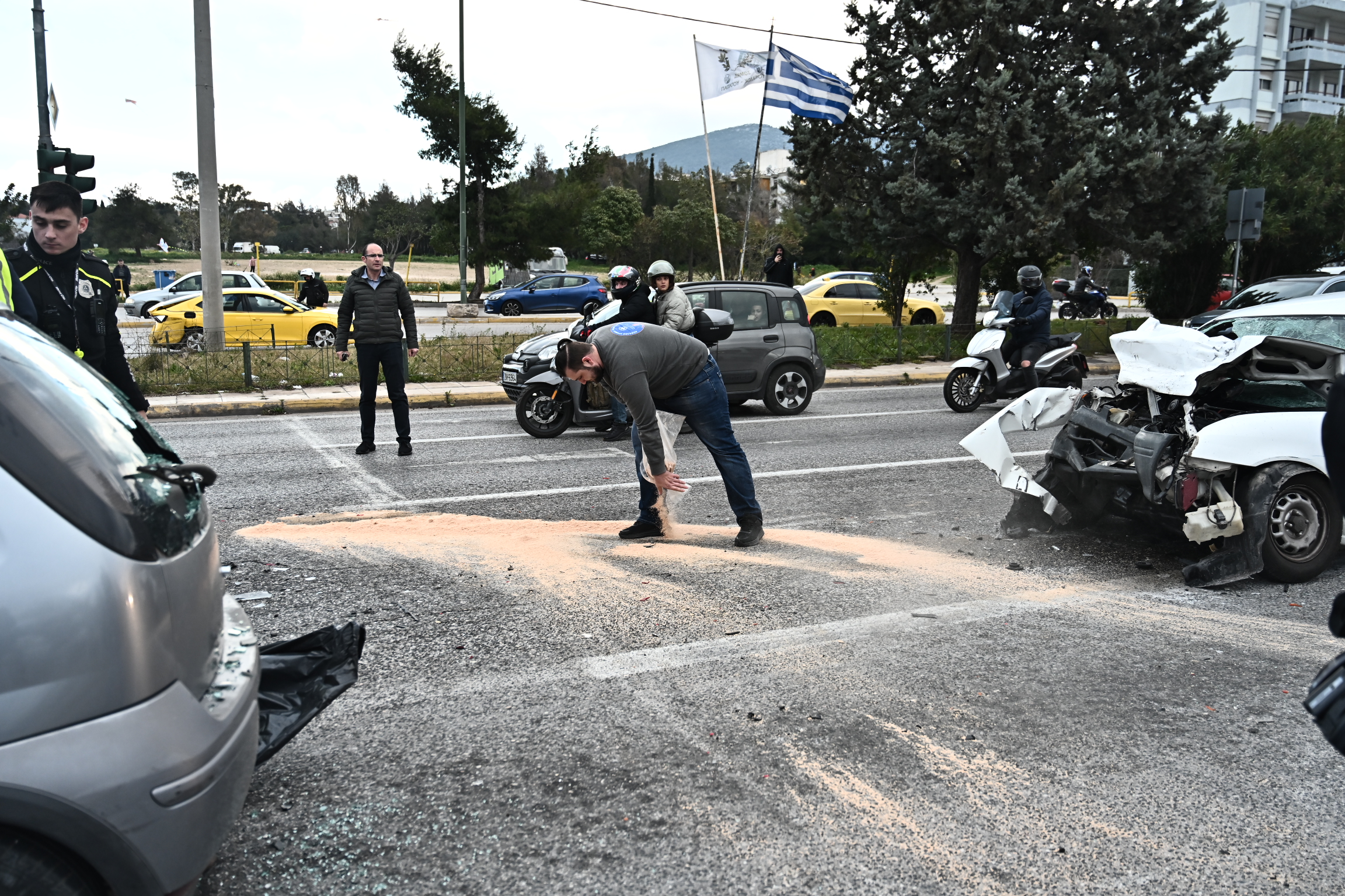Σύμφωνα με την ενημέρωση της Τροχαίας Αττικής, η σύγκρουση έγινε στο ρεύμα προς τη λεωφόρο Μεσογείων, στο ύψος της οδού Πίνδου.