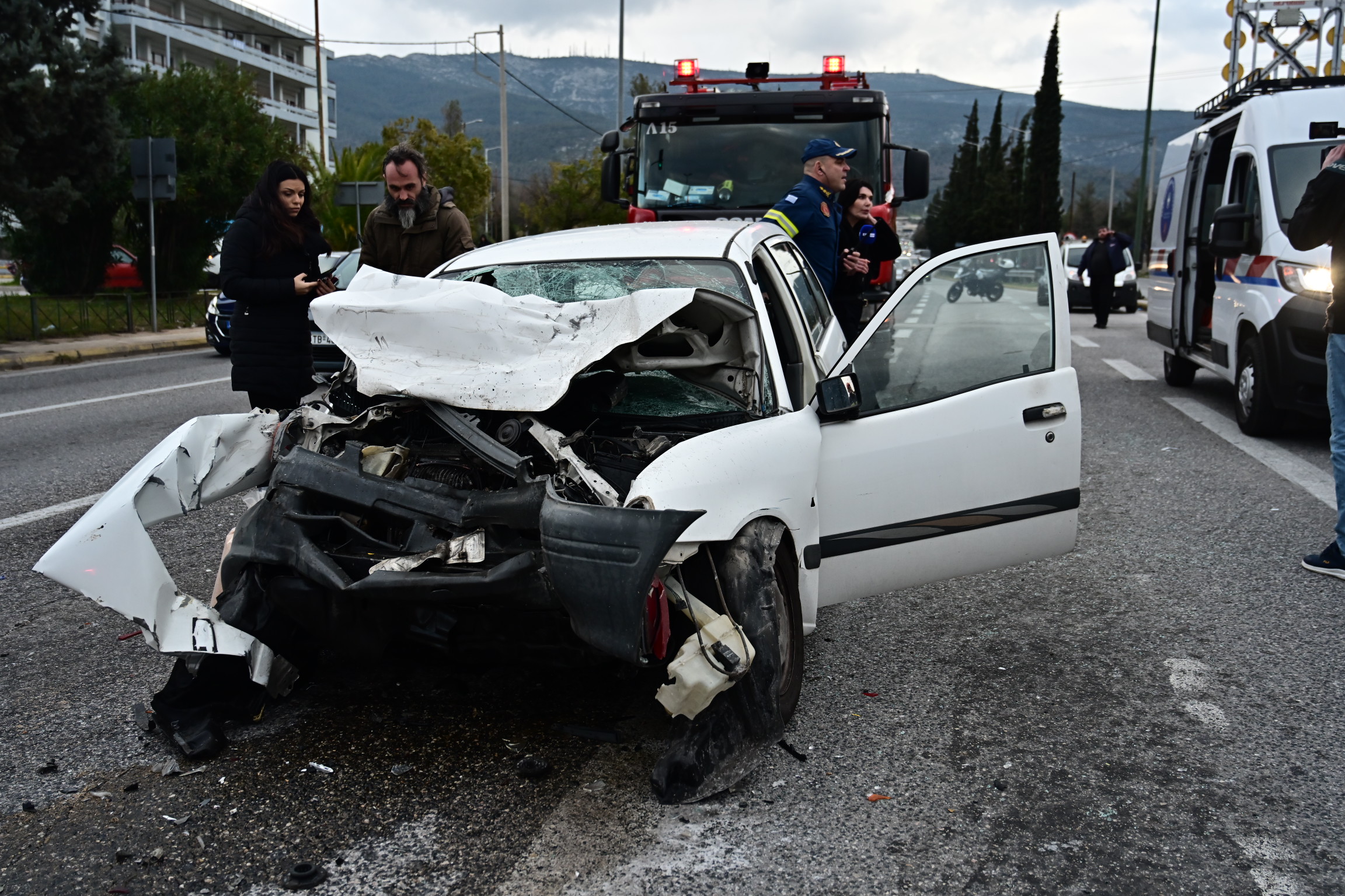 Αλλοι δύο άνθρωποι που επέβαιναν στα οχήματα και τραυματίστηκαν από την καραμπόλα, κατάφεραν να βγουν από αυτά.