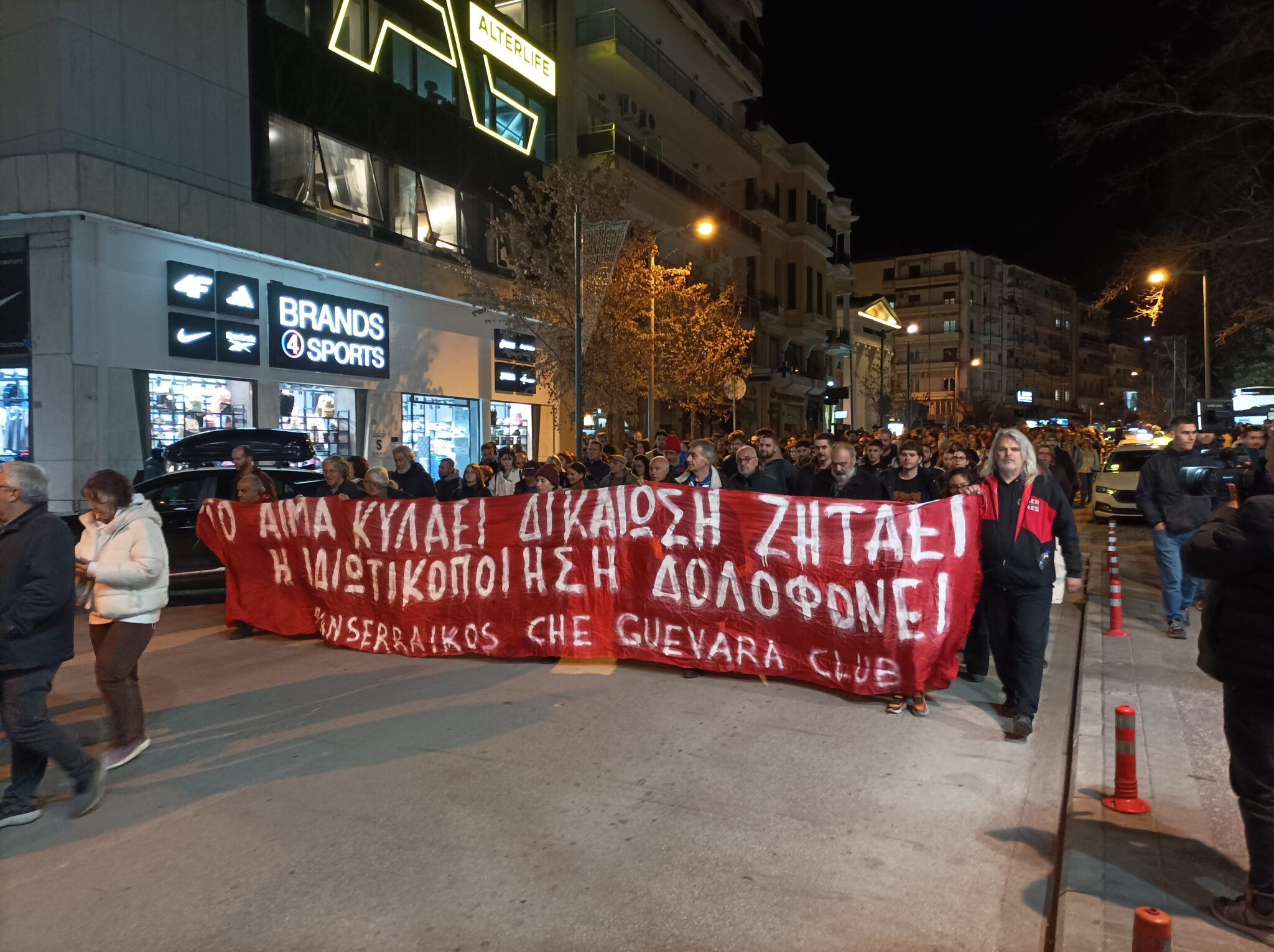 Οι διαμαρτυρόμενοι άκουσαν με συγκίνηση τα τραγούδια του Σερραίου καλλιτέχνη και στη συνέχεια πραγματοποίησαν πορεία στους κεντρικούς δρόμους της πόλης, ενώ η συγκέντρωση διαμαρτυρίας ολοκληρώθηκε από εκεί που είχε ξεκινήσει, την πλατεία Ελευθερίας, όπου για αρκετή ώρα παρέμειναν με συνθήματα εκφράζοντας την απαίτηση όλων των Ελλήνων για απονομή δικαιοσύνης.