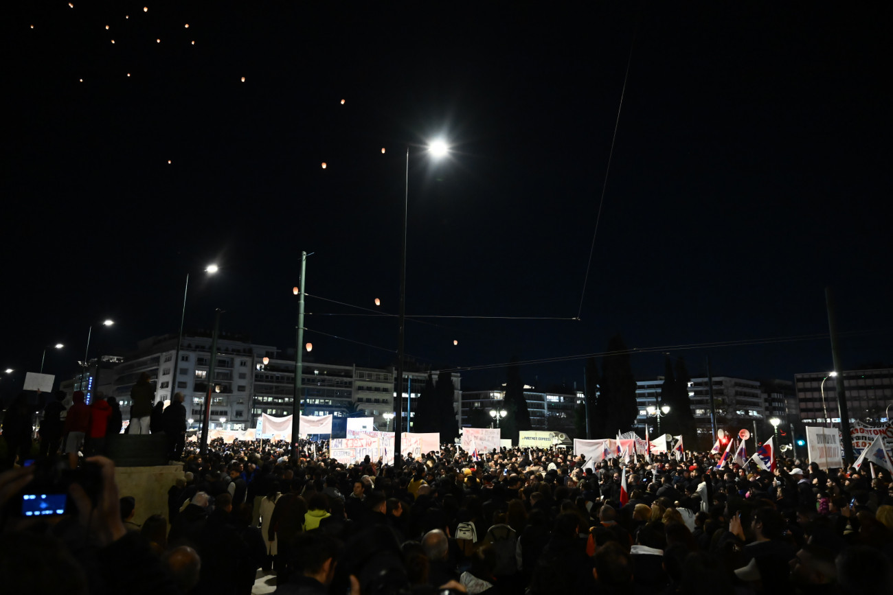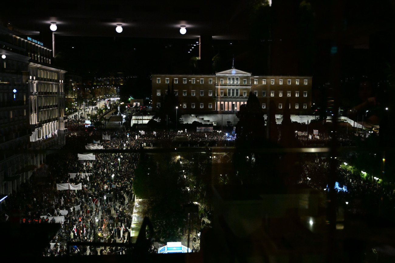 Πέραν του κοινοβουλευτικού σφυροκοπήματος της αντιπολίτευσης στην κυβέρνηση, διαδηλωτές συγκεντρώθηκαν στο Σύνταγμα και σε δεκάδες πόλεις της χώρας εντείνοντας από την πλευρά τους την πίεση.