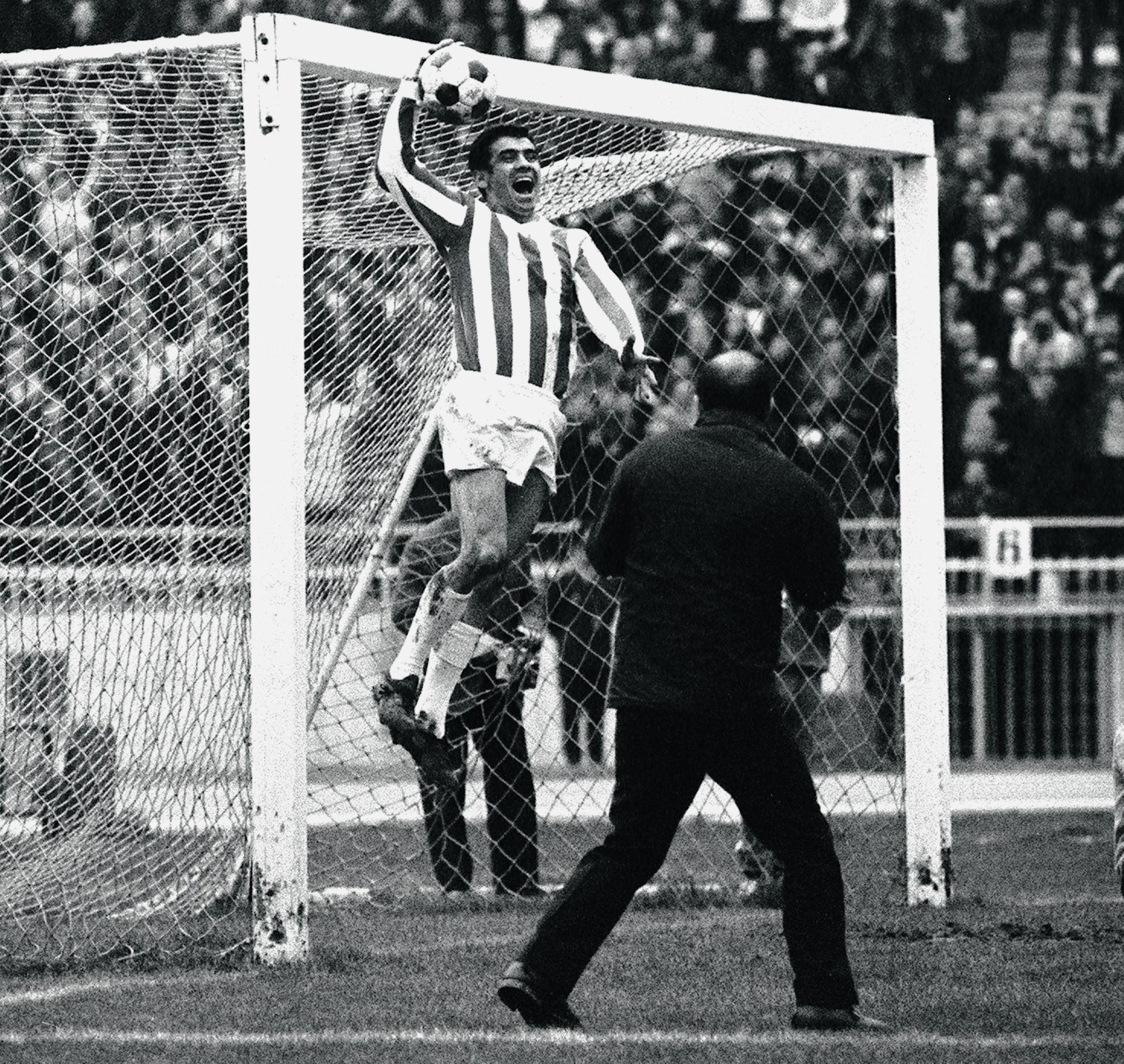 Nikos Youtsos in mid-air, looking very pop art. Wearing the famous 1960 jersey: A symbol of an entire era / Source: Action Images