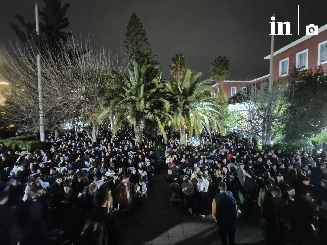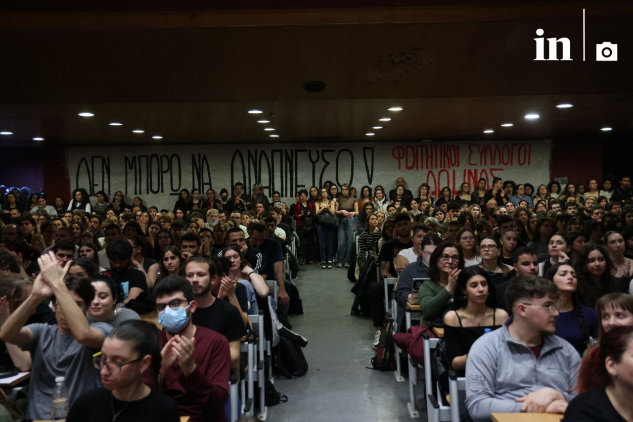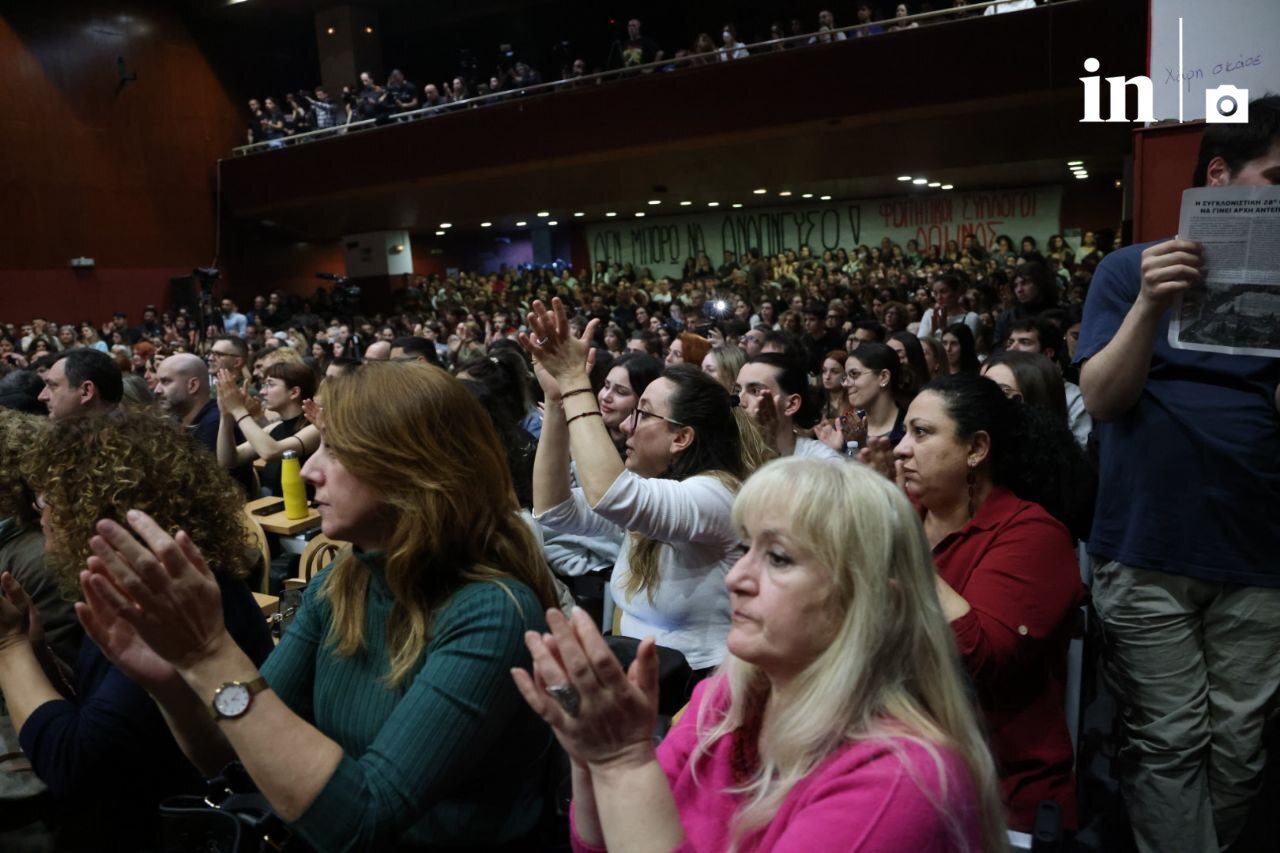 Πλήθος κόσμου στην εκδήλωση στο Πάντειο για τα Τέμπη