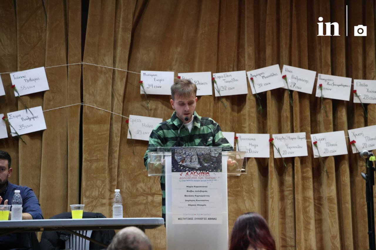Δύο χρόνια μετά την τραγωδία που συγκλόνισε τη χώρα, η μνήμη παραμένει ζωντανή. Η εκδήλωση «2 χρόνια από την κρατική δολοφονία των Τεμπών» στο Πάντειο Πανεπιστήμιο συγκέντρωσε πλήθος κόσμου, φοιτητές, ακαδημαϊκούς και πολίτες που αρνούνται να ξεχάσουν.