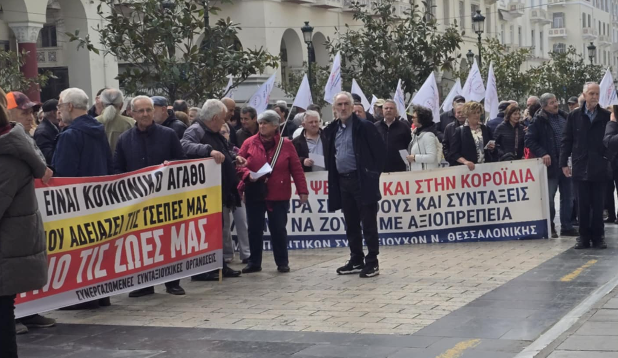 Συνταξιούχοι από όλα τα σωματεία της χώρας συγκεντρώθηκαν κρατώντας πανό έξω από τον ΕΦΚΑ στην πλατεία Αριστοτέλους. Κύριο αίτημα τους άμεσα μέτρα προστασίας από την ακρίβεια, στήριξη της δημόσιας Υγείας και νομοθέτηση καταβολής 13ης και 14ης σύνταξης.