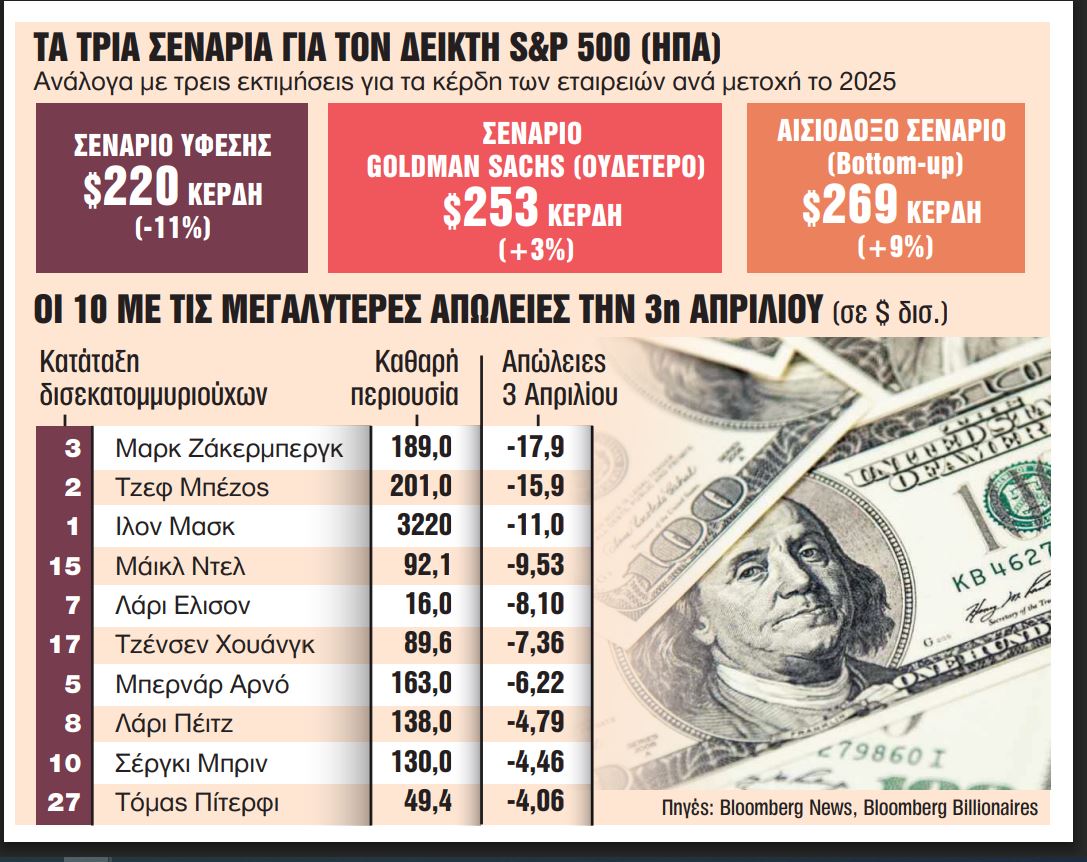 Τέλος, ήδη αναλυτές, όπως η Deutsche Bank, επεξεργάζονται σενάρια (βασικό, ύφεση, καλό) για τον δείκτη S&P 500 ανάλογα με τις προβλέψεις για τα κέρδη ανά μετοχή των εταιρειών.