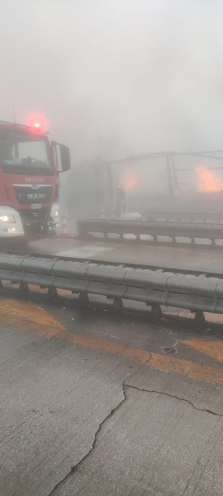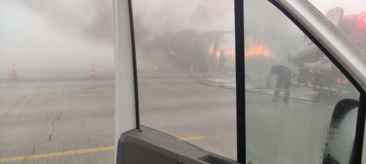 Σοβαρό τροχαίο στην Εγνατία Οδό: Φορτηγό έπεσε στα διόδια Πολυμύλου και προκάλεσε φωτιά