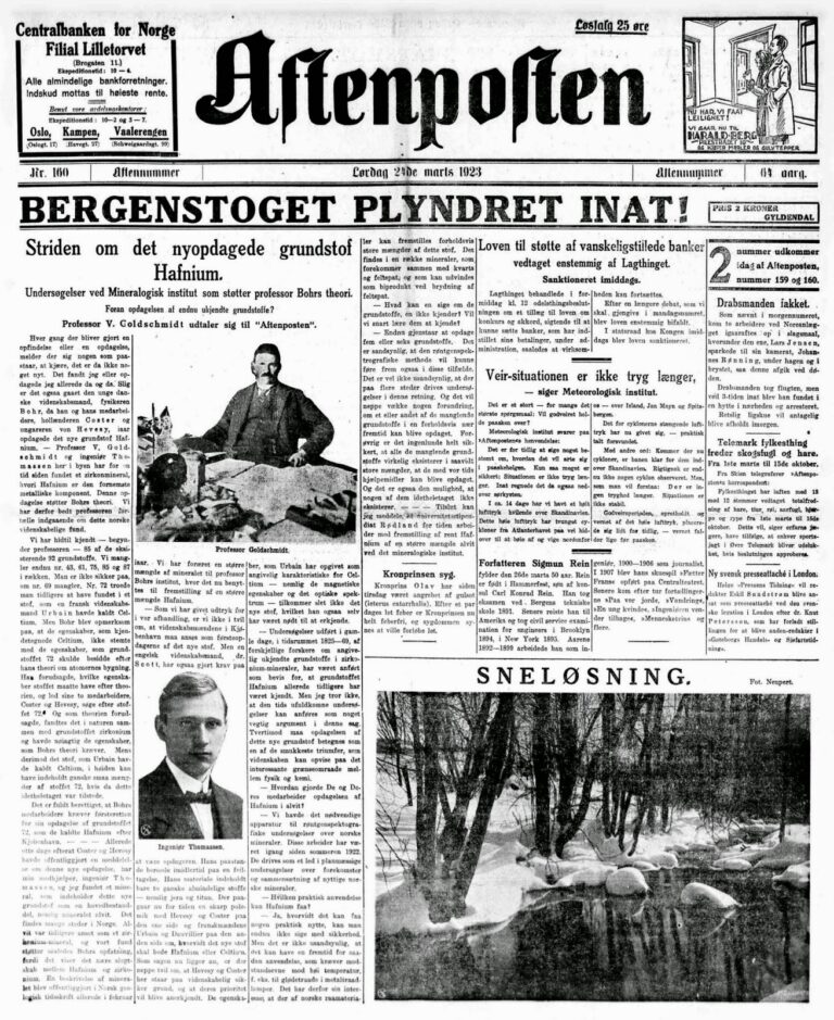 Τον Φεβρουάριο του 1923, δύο Νορβηγοί, ο Nordahl Grieg και ο Nils Lie, έγραψαν ένα αστυνομικό μυθιστόρημα για τη λεηλασία ενός τρένου προς το Μπέργκεν.