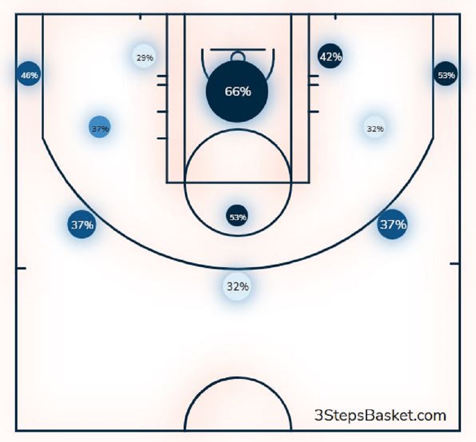 Παράλληλα σούταρε καλύτερα από όλη την υπόλοιπη Euroleague όντας η πιο αποτελεσματική στο σκοράρισμα με 62.2% True Shooting και η πιο αποτελεσματική στα σουτ με 58.7% eFG, παίρνοντας μάλιστα 1.17 πόντους ανά σουτ εντός πεδιάς. Την ίδια στιγμή ήταν 3η σε συνολικά ριμπάουντ κατεβάζοντας το 51.9% των διαθέσιμων και 4η σε επιθετικά εξασφαλίζοντας το 33.5% των διαθέσιμων.