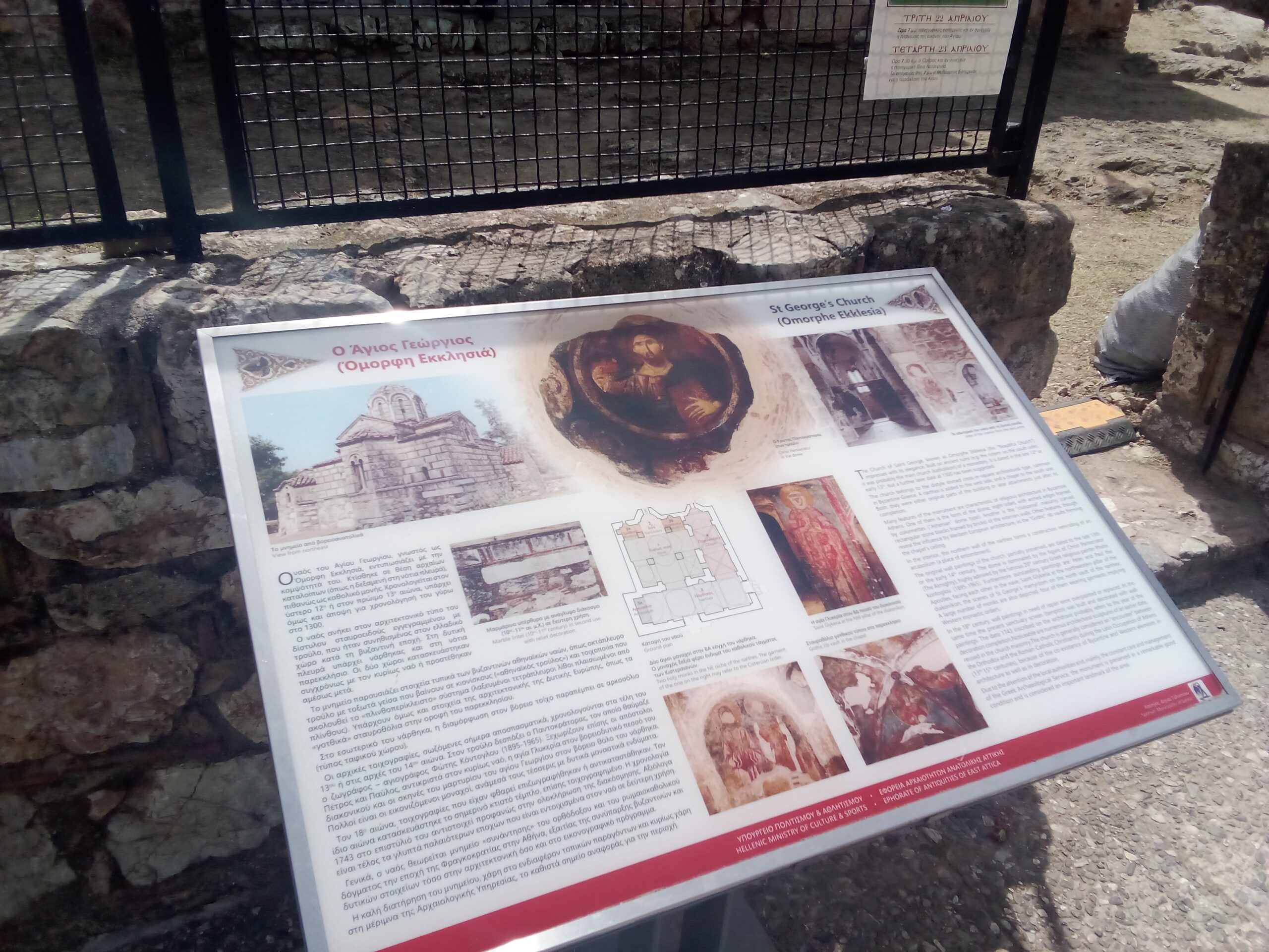 Απέναντι από το Άλσος Βεΐκου, βρίσκεται ο Άγιος Γεώργιος, η επίσης λεγόμενη Όμορφη Εκκλησία ή Ομορφοκκλησιά. Πρόκειται για μεσαιωνική εκκλησία του 11ου αιώνα ρυθμού εγγεγραμμένου σταυροειδούς με τρούλο. Ανοίγει για το κοινό μόνο μία φορά το χρόνο στην εορτή του Αγίου Γεωργίου, φέτος άνοιξε το διήμερο 22 και 23 Απριλίου. Στο εσωτερικό της έχει τοιχογραφίες και αγιογραφίες από το βίο του Αγίου Γεωργίου, από τη Παλαιά Διαθήκη.