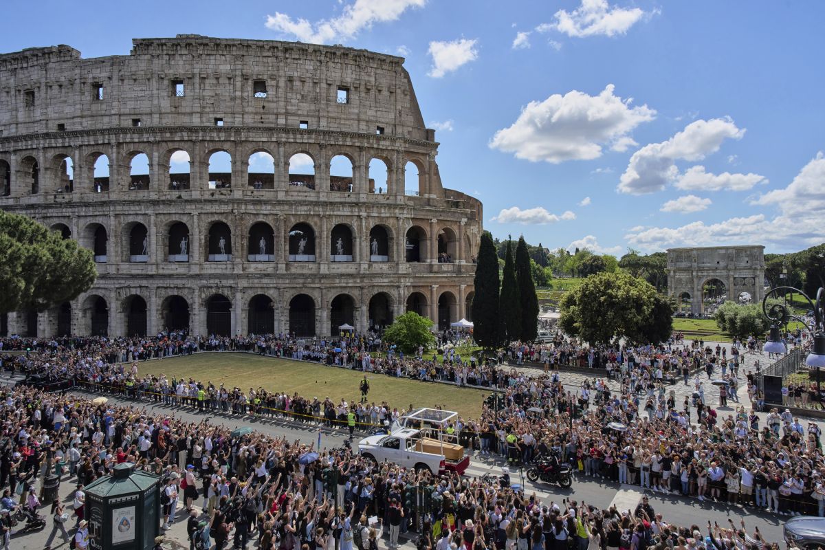 Το φέρετρο του Πάπα Φραγκίσκου περνά μπροστά από το Κολοσσαίο στη Ρώμη / AP Photo/Bernat Armangue