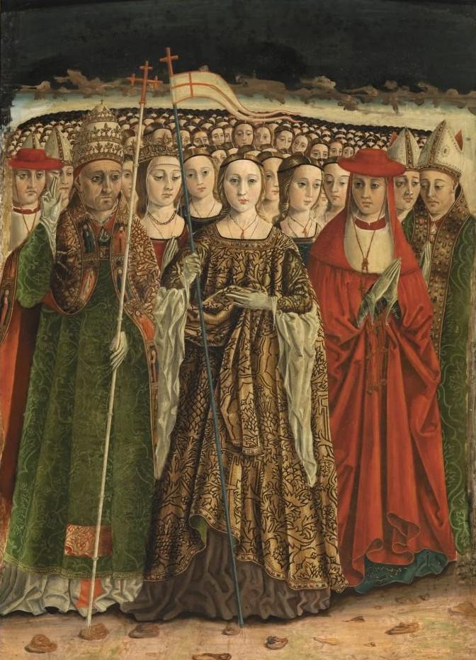 Σύμφωνα με τον μύθο, η νεαρή γυναίκα που θα γινόταν η Αγία Ούρσουλα, κόρη του βασιλιά της Βρετάνης Δεονάτου, ξεκίνησε τον τέταρτο αιώνα από την πατρίδα της, την Αγγλία, έχοντας στη συντροφιά της έντεκα χιλιάδες παρθένες για να διασχίσει την ευρωπαϊκή ήπειρο. Οι λόγοι για το μακρύ ταξίδι της είναι ασαφείς και ακροβατούν ανάμεσα σε ένα προξενιό ή ένα προσκύνημα στη Ρώμη.