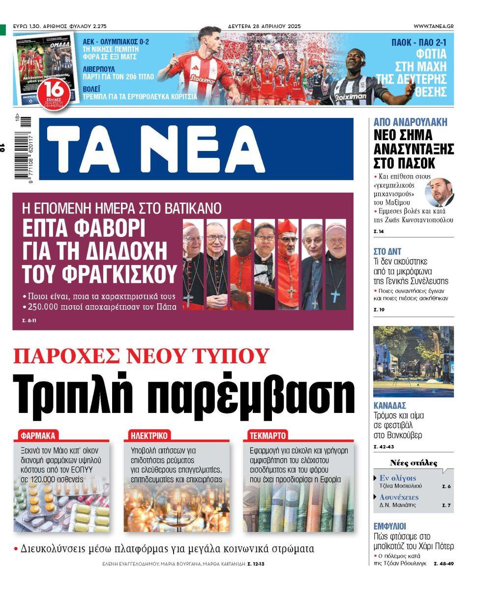 Στα «ΝΕΑ» της Δευτέρας: Τριπλή παρέμβαση