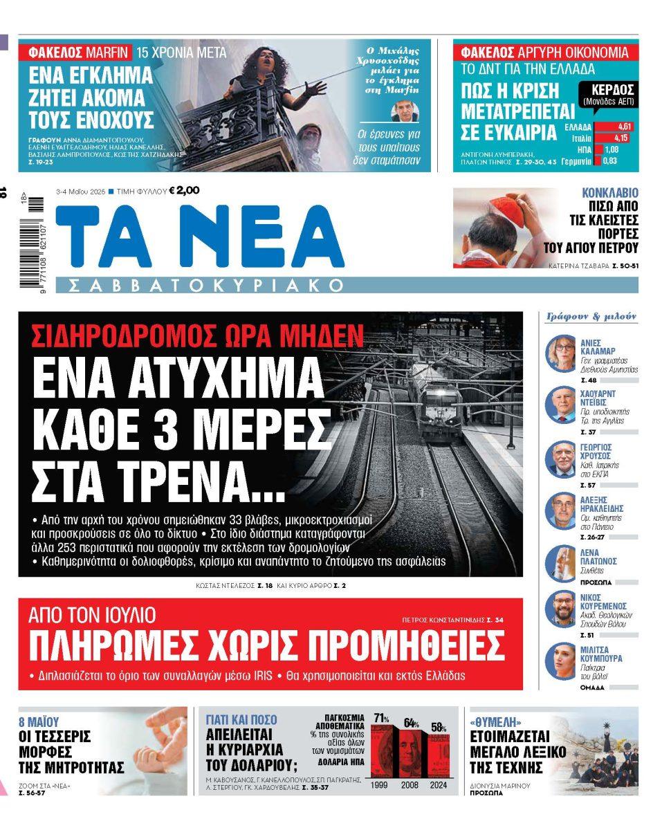 Στα «Νέα Σαββατοκύριακο»: Ενα ατύχημα κάθε 3 μέρες στα τρένα…