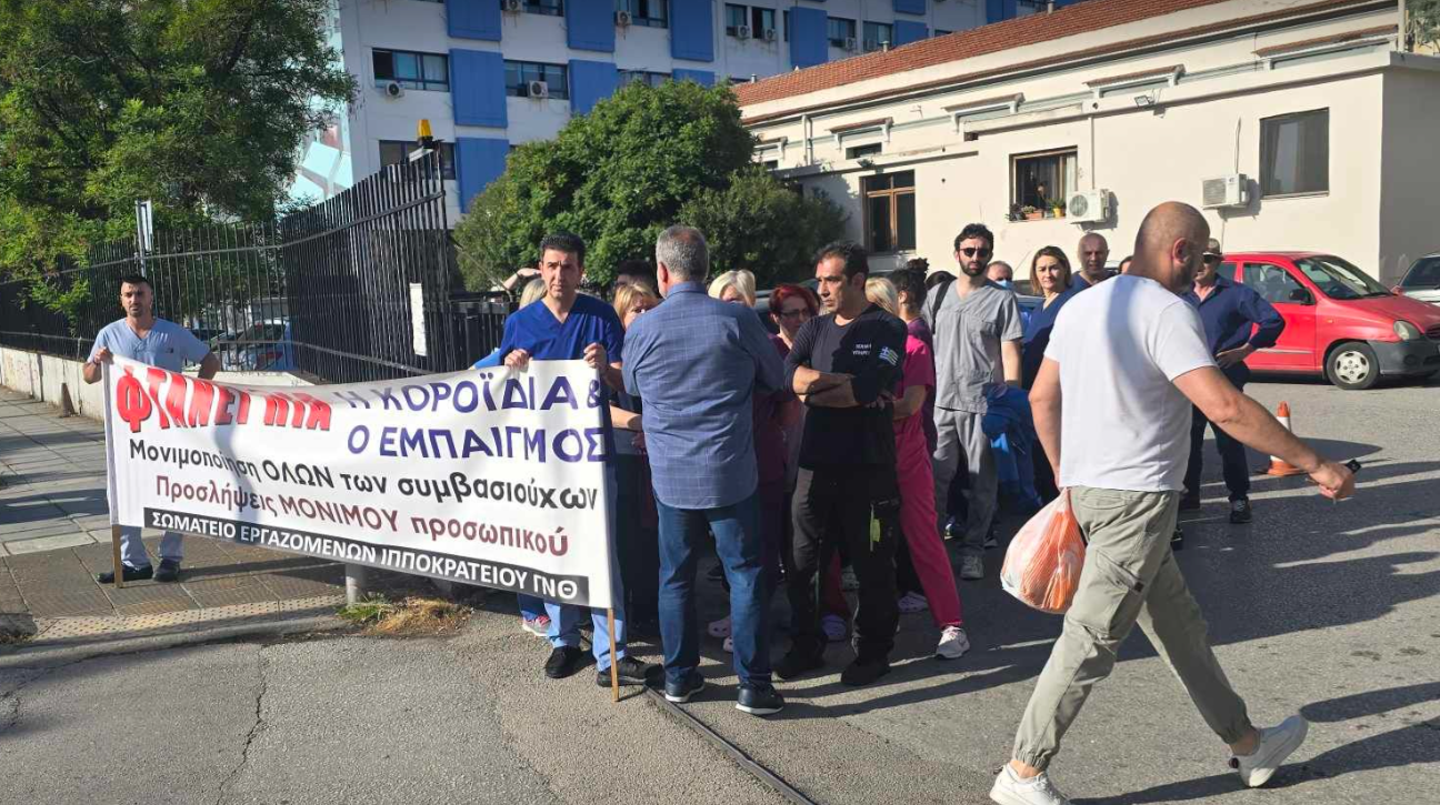 Συγκέντρωση πραγματοποιεί αυτή την ώρα η ΠΟΕΔΗΝ έξω από το Ιπποκράτειο Νοσοκομείο Θεσσαλονίκης.