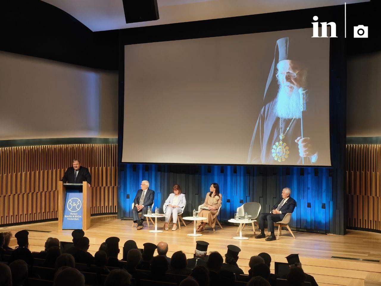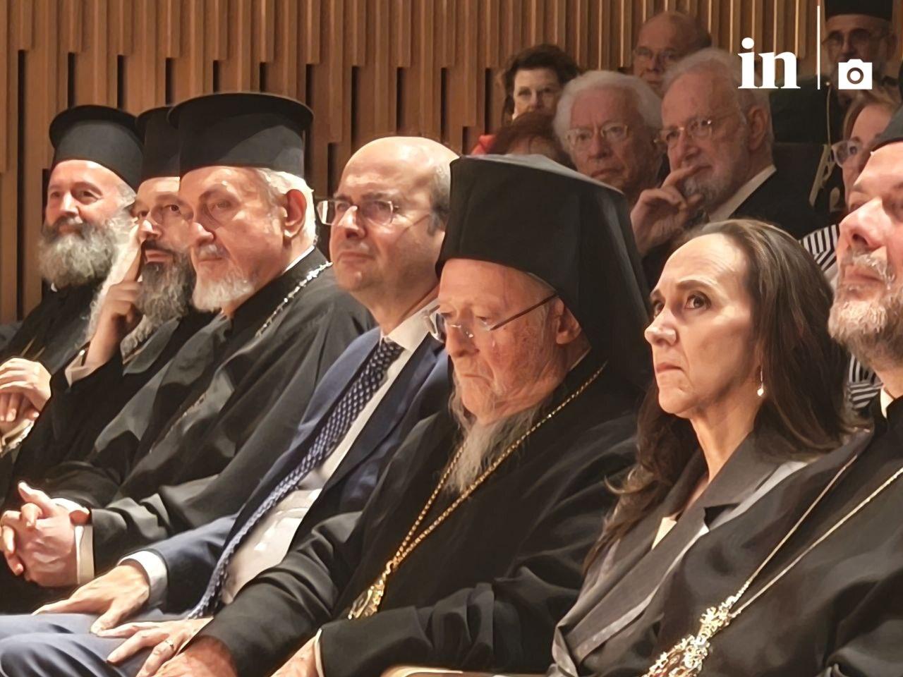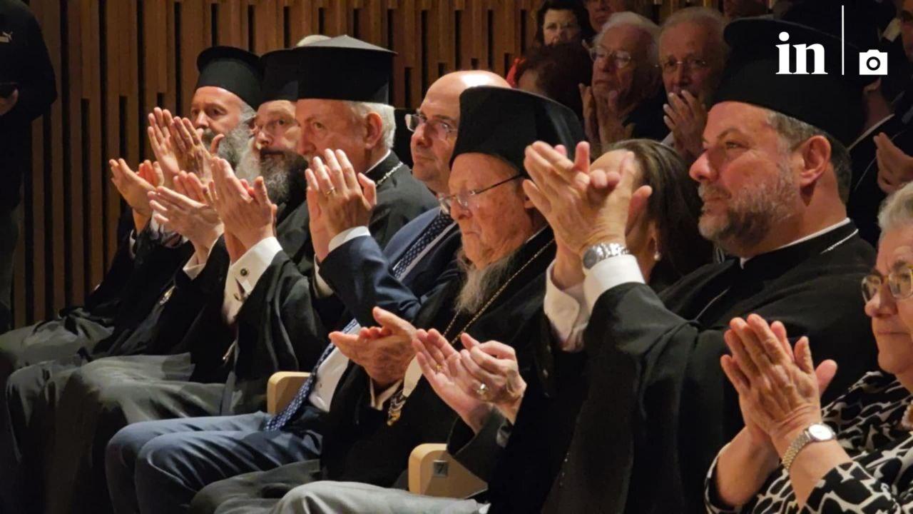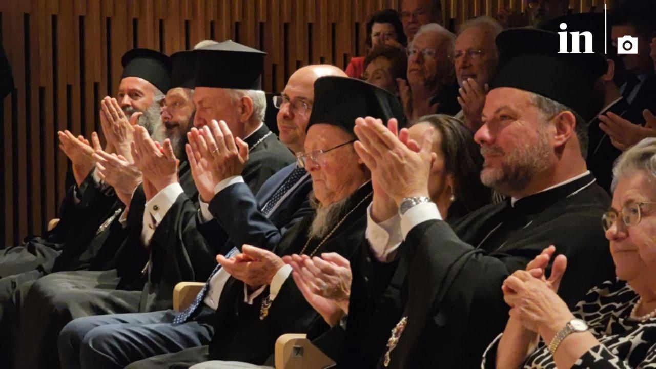 Ο Οικουμενικός Πατριάρχης κατά την ομιλία του χαιρέτισε και την εκλογή του νέου Πάπα, που έγινε γνωστή κατά τη διάρκεια της εκδήλωσης.