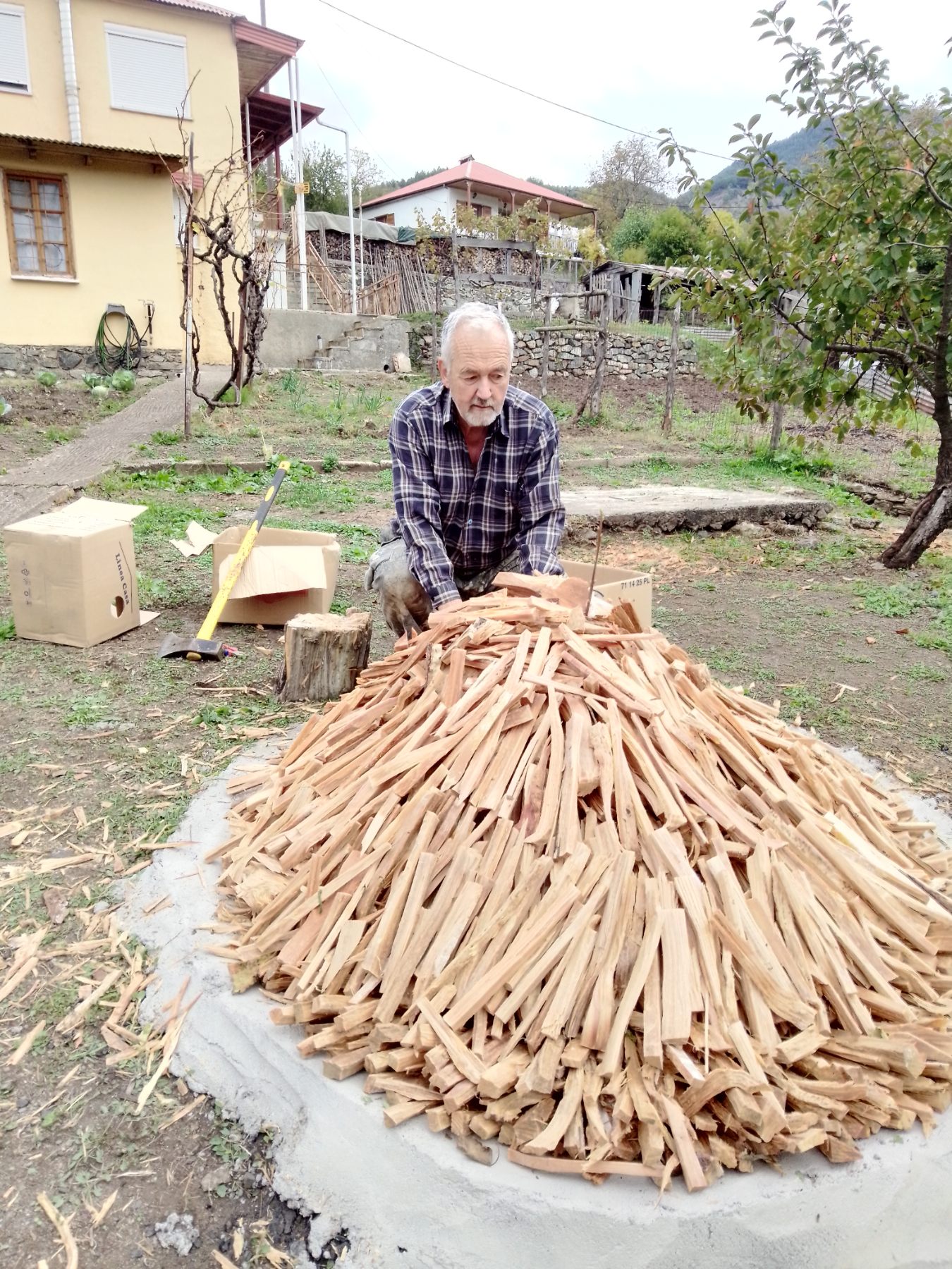 Κοντά στο σημείο όπου είχαν συγκεντρώσει τα δαδιά, άνοιγαν μια ειδική στο έδαφος γούρνα 50 εκατοστών βάθους και διαμέτρου 2 μέτρων, σε επικλινές έδαφος. Τα τοιχώματα της γούρνας κάλυπταν με ειδική λάσπη, ώστε το προϊόν να μην απορροφάται από το χώμα, αλλά να ρέει. Εκεί μέσα τοποθετούσαν επιμελώς τα δαδιά σε σχήμα κώνου.