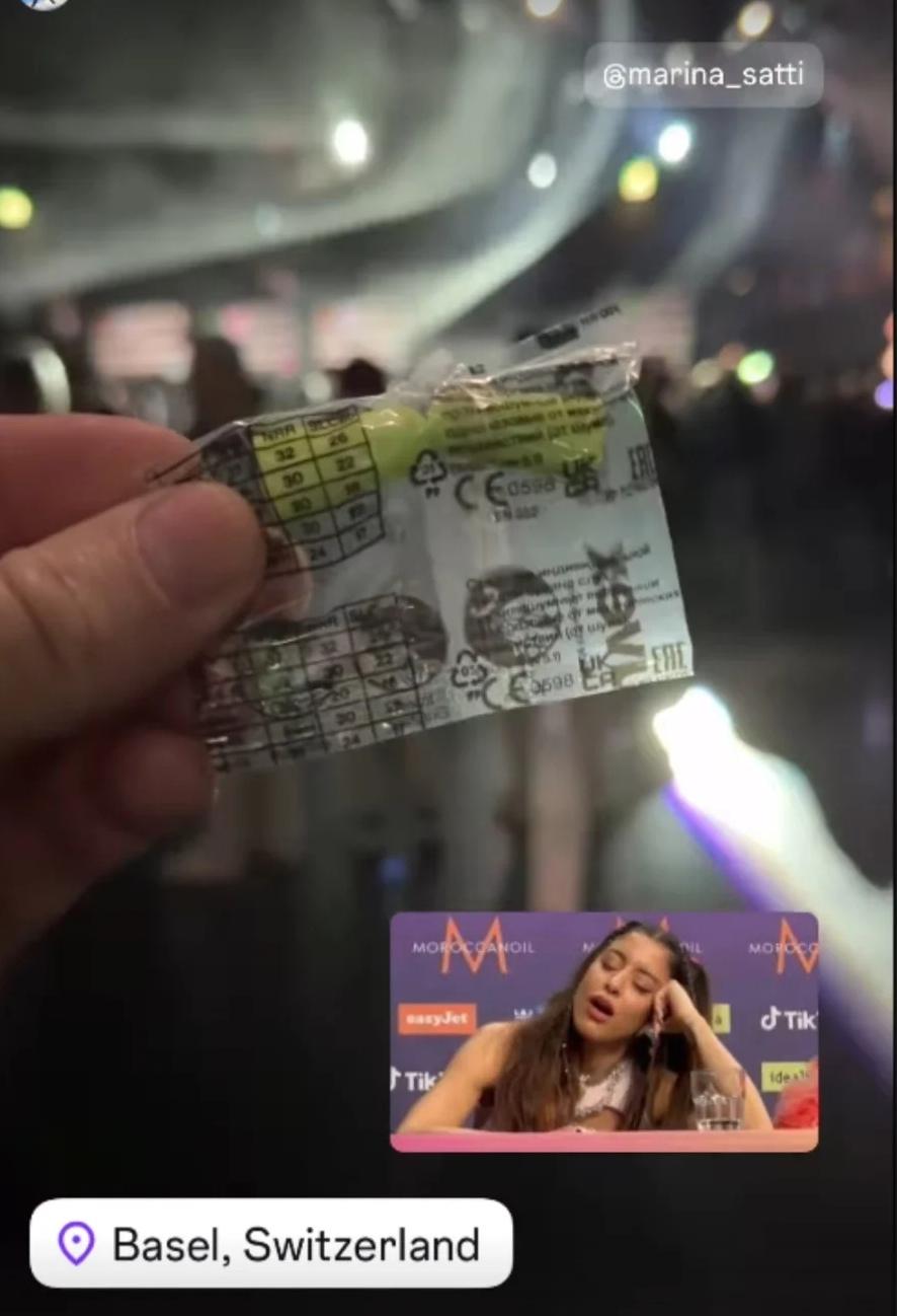 Πιο συγκεκριμένα, ο δημοσιογράφος τράβηξε βίντεο από την μουσική performance της Σάττι, λίγο πριν παρουσιάσει στο βίντεο ένα σετ ωτοασπίδες, ενώ παράλληλα συμπεριέλαβε μια φωτογραφία από το πολυσυζητημένο χασμουρητό της Μαρίνας Σάττι κατά τη διάρκεια της περσινής συνέντευξης Τύπου, όταν η εκπρόσωπος του Ισραήλ, Έντεν Γκολάν, μιλούσε στις κάμερες.