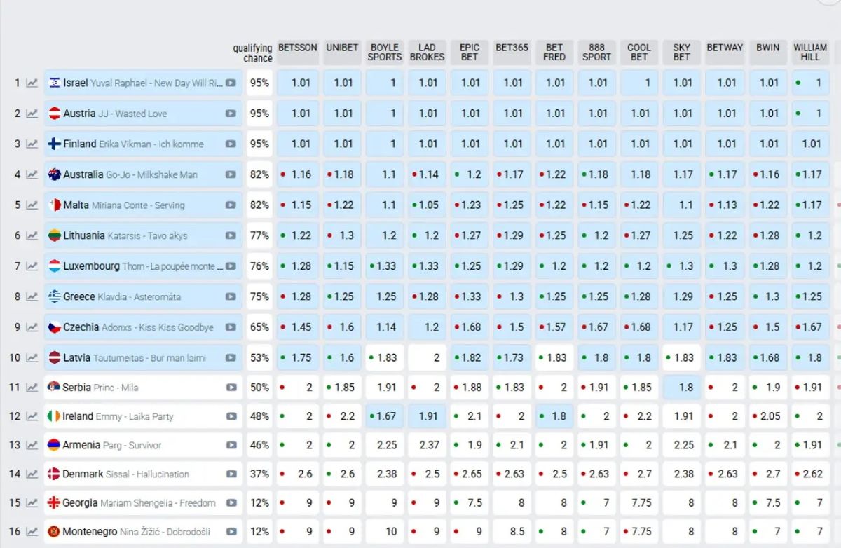 Ως το απόλυτο φαβορί του Β’ Ημιτελικού φιγουράρει το Ισραήλ, ενώ στη δεύτερη και τρίτη θέση βρίσκονται Αυστρία και Φινλανδία. Όσον αφορά την Ελλάδα, μέχρι στιγμής η Klavdia βρίσκεται στην 8η θέση, κάτι που σημαίνει πως, αν επιβεβαιωθούν τα στοιχήματα, περνάει κανονικά στον τελικό.