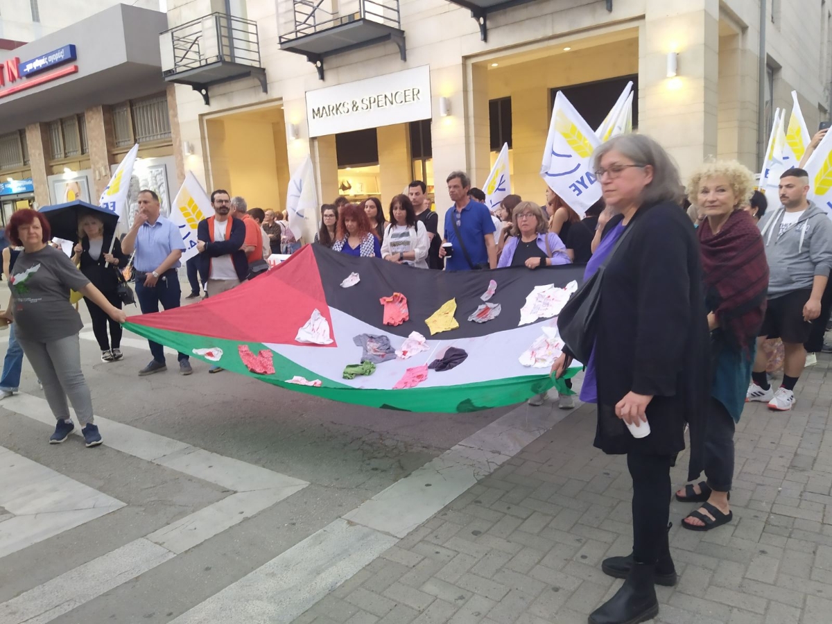 Η πορεία κατέληξε με συνθήματα υπέρ της ειρήνης και της ελευθερίας του παλαιστινιακού λαού, σε κλίμα συγκίνησης και αγανάκτησης για τη συνεχιζόμενη αιματοχυσία.