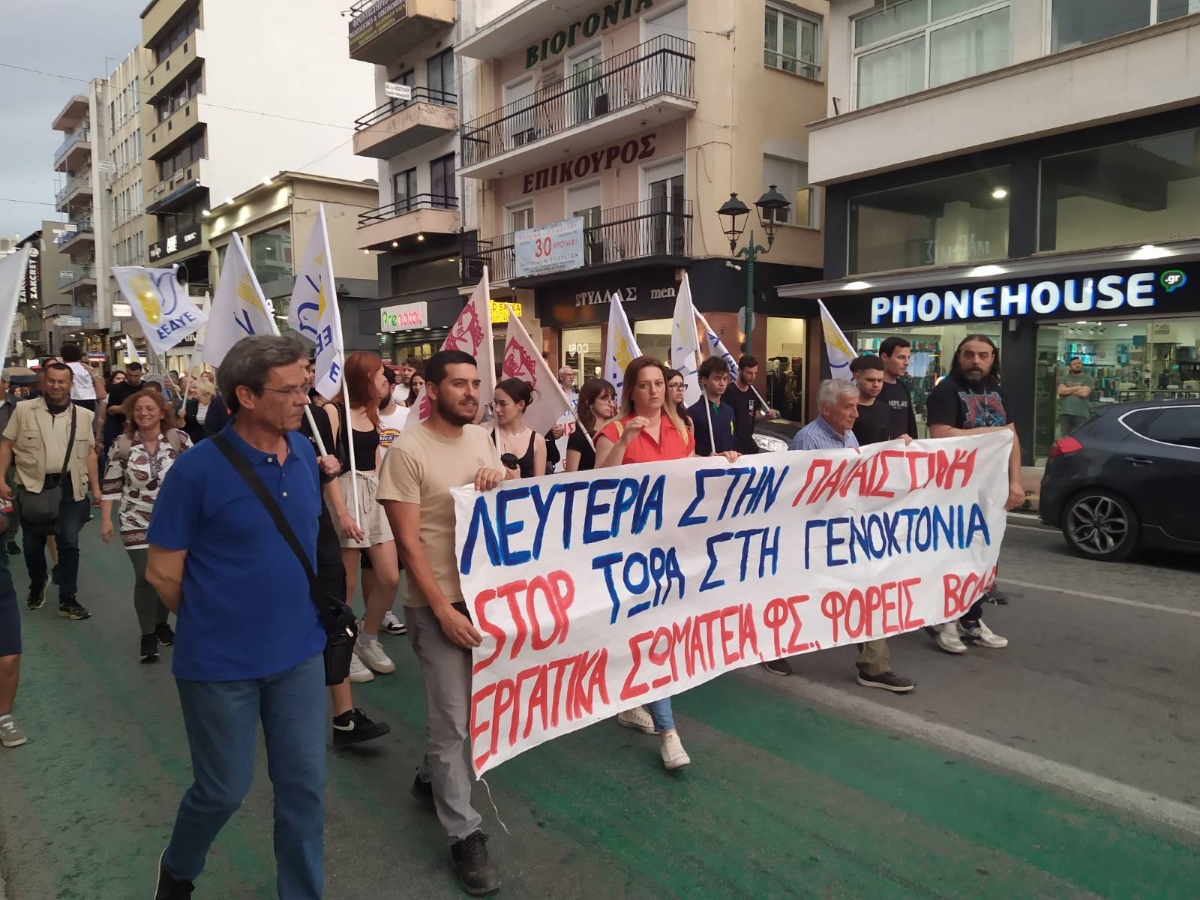 Συγκέντρωση και πορεία διαμαρτυρίας για την αιματοχυσία και την ανθρωπιστική κρίση στη Λωρίδα της Γάζας πραγματοποιήθηκε το απόγευμα της Παρασκευής (23-5-2025) στον Άγιο Νικόλαο του Βόλου, με τη συμμετοχή σωματείων, συλλογικοτήτων και της Επιτροπής Ειρήνης Μαγνησίας.