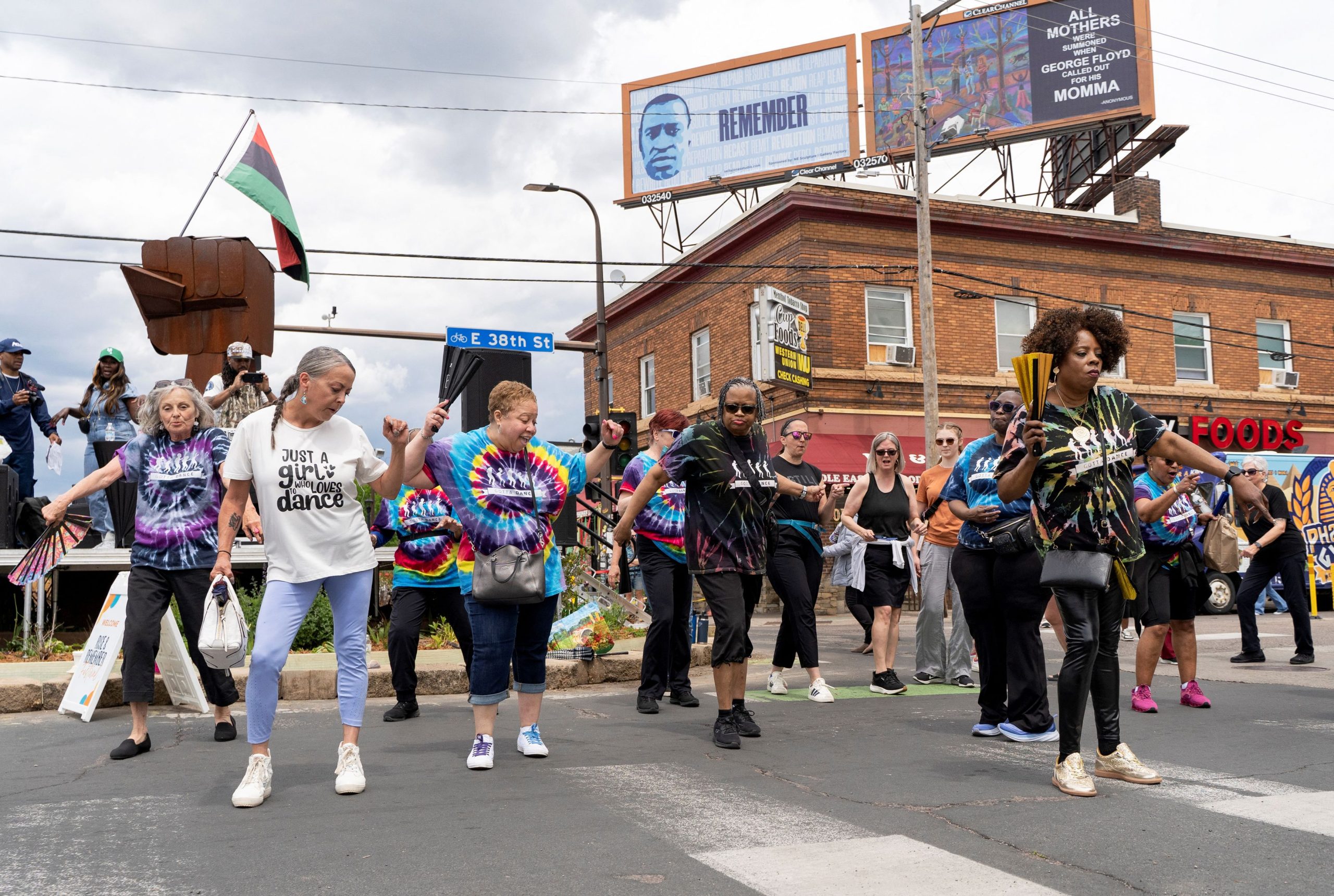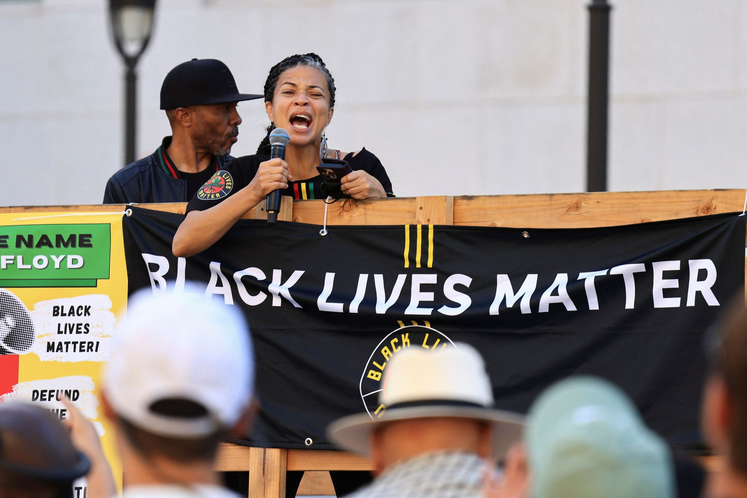 Ακτιβιστές του Black Lives Matter και υποστηρικτές συγκεντρώθηκαν για την 5η επέτειο του θανάτου του Φλόιντ. REUTERS/David Swanson