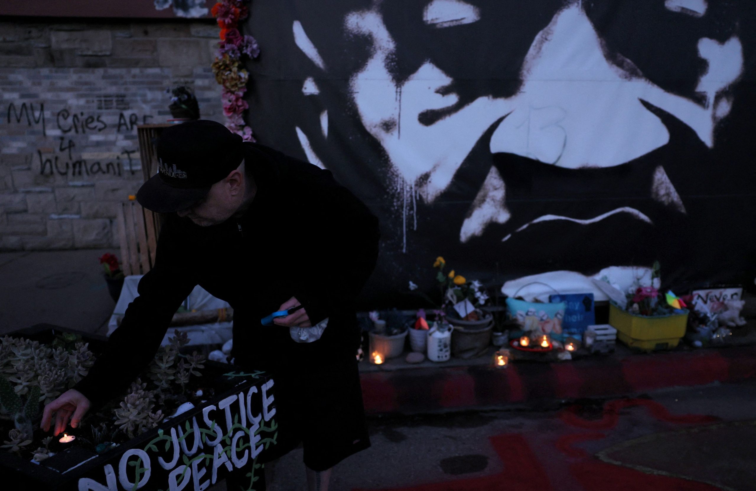 Πολίτης ανάβει κεριά στο σημείο που σημειώθηκε η δολοφονία. REUTERS/Leah Millis