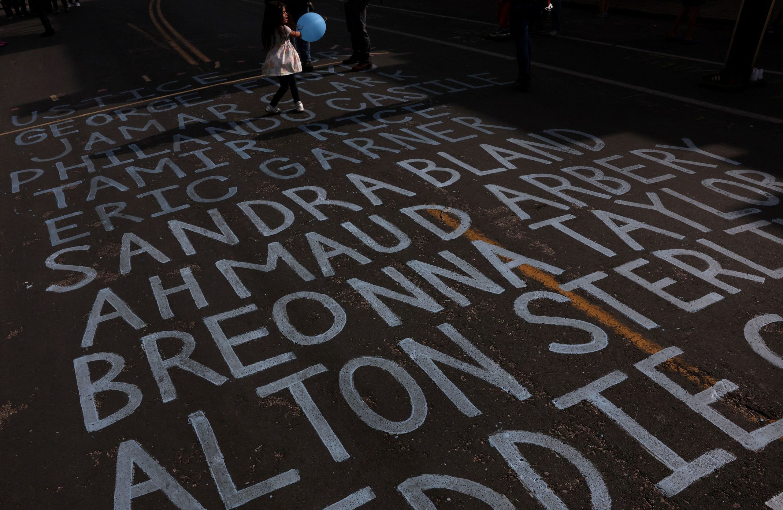 Ένα πεντάχρονο κορίτσι παίζει σε δρόμο που έχει τα ονόματα όσων έχασαν τη ζωή τους από αστυνομικούς. REUTERS/Leah Millis
