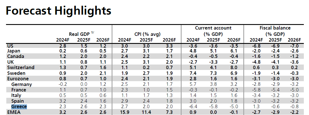 Ιδιαίτερα θετική είναι η εικόνα που σκιαγραφεί η UBS για την ελληνική οικονομία, σύμφωνα με τις τελευταίες εκτιμήσεις της για την περίοδο 2024–2026.