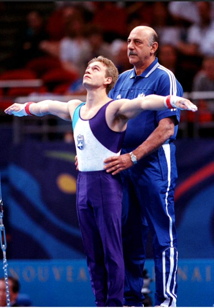 Ως προπονητής του Δημοσθένη Ταμπάκου από το 1996 έως το 2009, δημιούργησε τον πρώτο Έλληνα «άρχοντα των κρίκων» καθοδηγώντας τον σε όλες τις εντυπωσιακές διεθνείς επιτυχίες του, με αποκορύφωμα την κατάκτηση του χρυσού μεταλλίου στους Ολυμπιακούς Αγώνες «Αθήνα 2004», ενώ είχε προηγηθεί το ασημένιο Ολυμπιακό μετάλλιο στο «Σίδνεϊ 2000», καθώς επίσης δύο μετάλλια σε Παγκόσμια Πρωταθλήματα (χρυσό το 2003, χάλκινο το 1999) και τέσσερα μετάλλια σε Ευρωπαϊκά Πρωταθλήματα (χρυσό το 2000 και 2004, ασημένιο το 2002, χάλκινο το 1998), μεταξύ άλλων. Παράλληλα, κατά το διάστημα 2001-2002 διετέλεσε επικεφαλής προπονητής της Εθνικής Ανδρών.