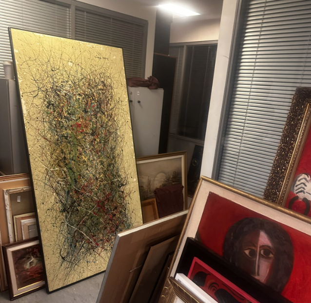 - πλήθος εργαλείων ζωγραφικής (πινέλα, μελάνια, κασετίνες χρωμάτων, πένες, δοχεία με διαλυτικό υγρό, σκόνες αγιογραφίας, ακρυλικά χρώματα, σφυριά, βούρτσες, κοπτήρια, σπάτουλες, λάμα, ),