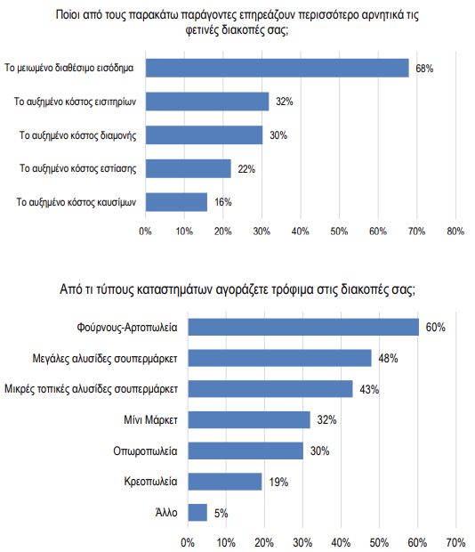 Συνοψίζοντας, τα ευρήματα αποτυπώνουν μια σαφή τάση εξοικονόμησης χρημάτων στις φετινές διακοπές, αποτέλεσμα κυρίως του μειωμένου διαθέσιμου εισοδήματος και του αυξημένου κόστους μετακίνησης και διαμονής.