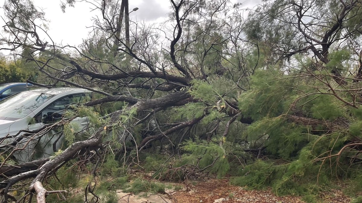 Μεγάλα δέντρα ξεριζώθηκαν και κολώνες φωτισμού αποκολλήθηκαν ενώ καταπλακώθηκαν οχήματα προκαλώντας σημαντικές ζημιές.